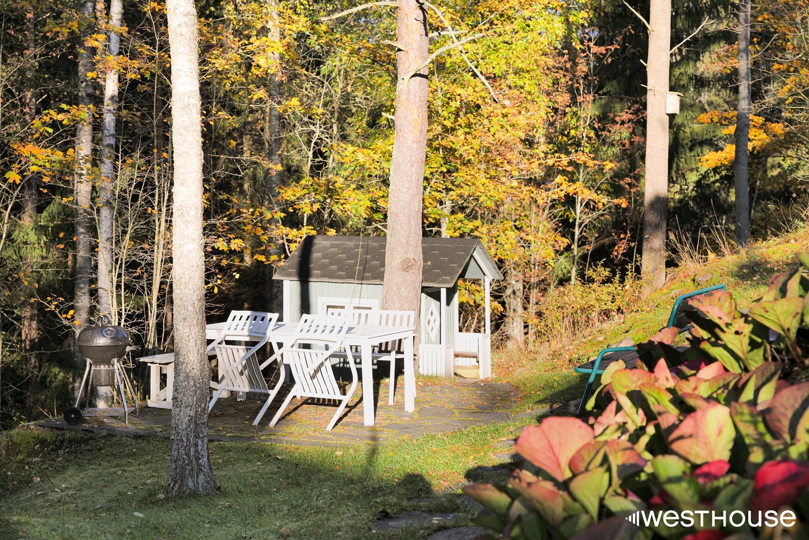 Vehreät näkymät piha/metsämaisemaan.