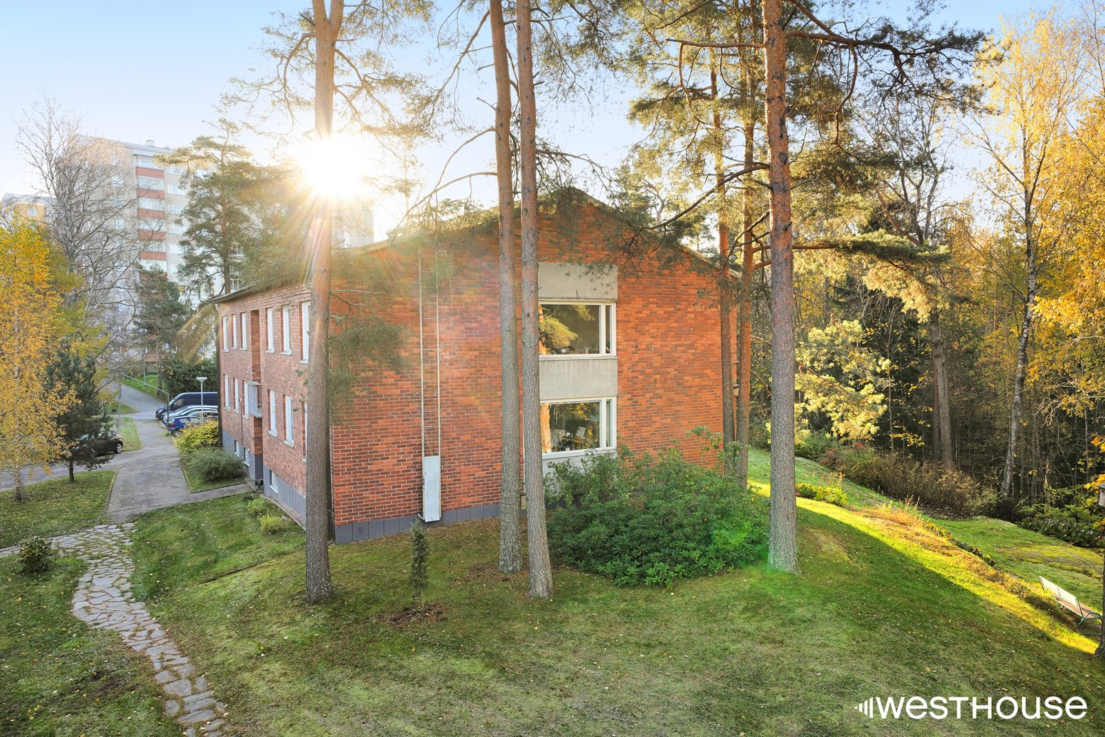 Asunto sijaitsee taloyhtiön ylimmässä kerroksessa, ja parvekkeelta avautuvat vehreät näkymät piha- ja metsämaisemaan. Taloyhtiössä on myös sauna, pesutupa, urheiluvälinevarasto, sekä autotalleja, joten arki on sujuvaa.