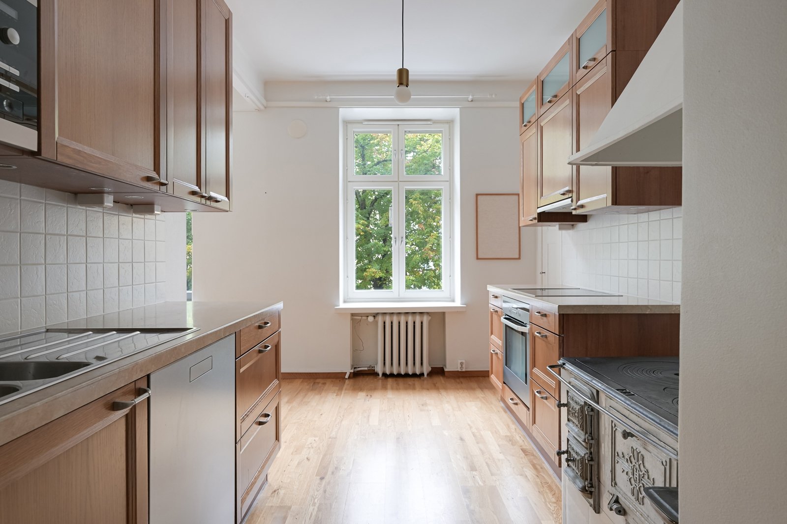 Arvostetun Töölön sydämessä, odottaa 129 m²:n asunto, joka hurmaa tilavuudellaan. Tämä vuonna 1924 valmistunut koti sijaitsee hissillisen talon toisessa kerroksessa ja tarjoaa harvinaisen avoimet näkymät kaupunkiin pitkin Aurorankatua.