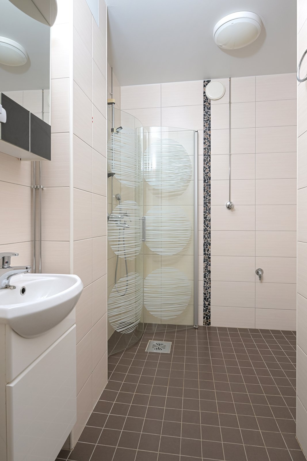 Huoneiston kylpyhuone on kokonaan kaakeloitu ja kunnostettu linjasaneerauksen yhteydessä vuonna 2008.