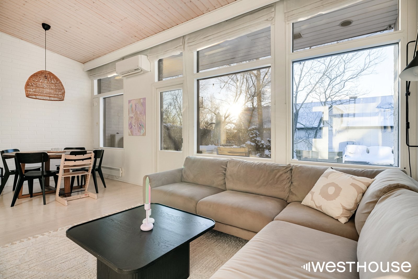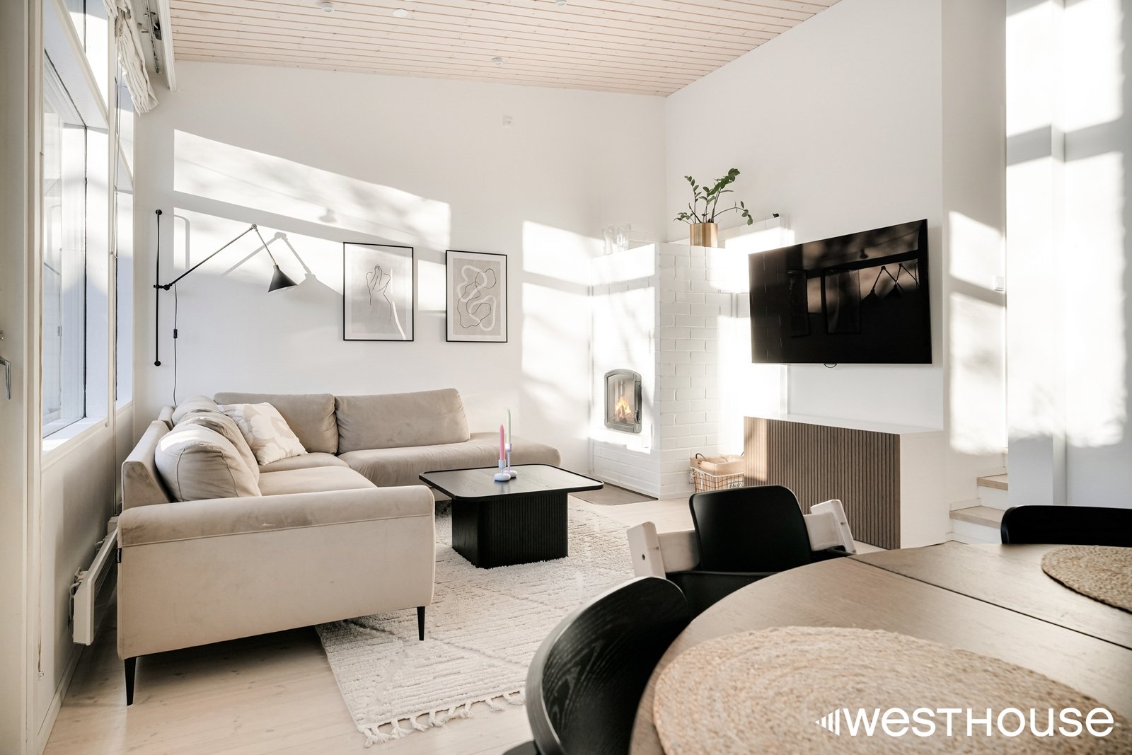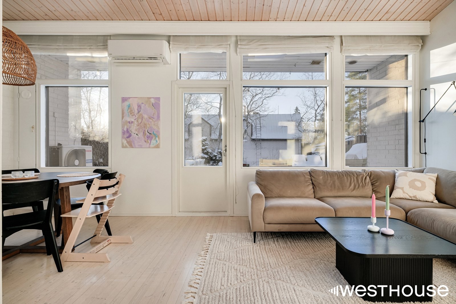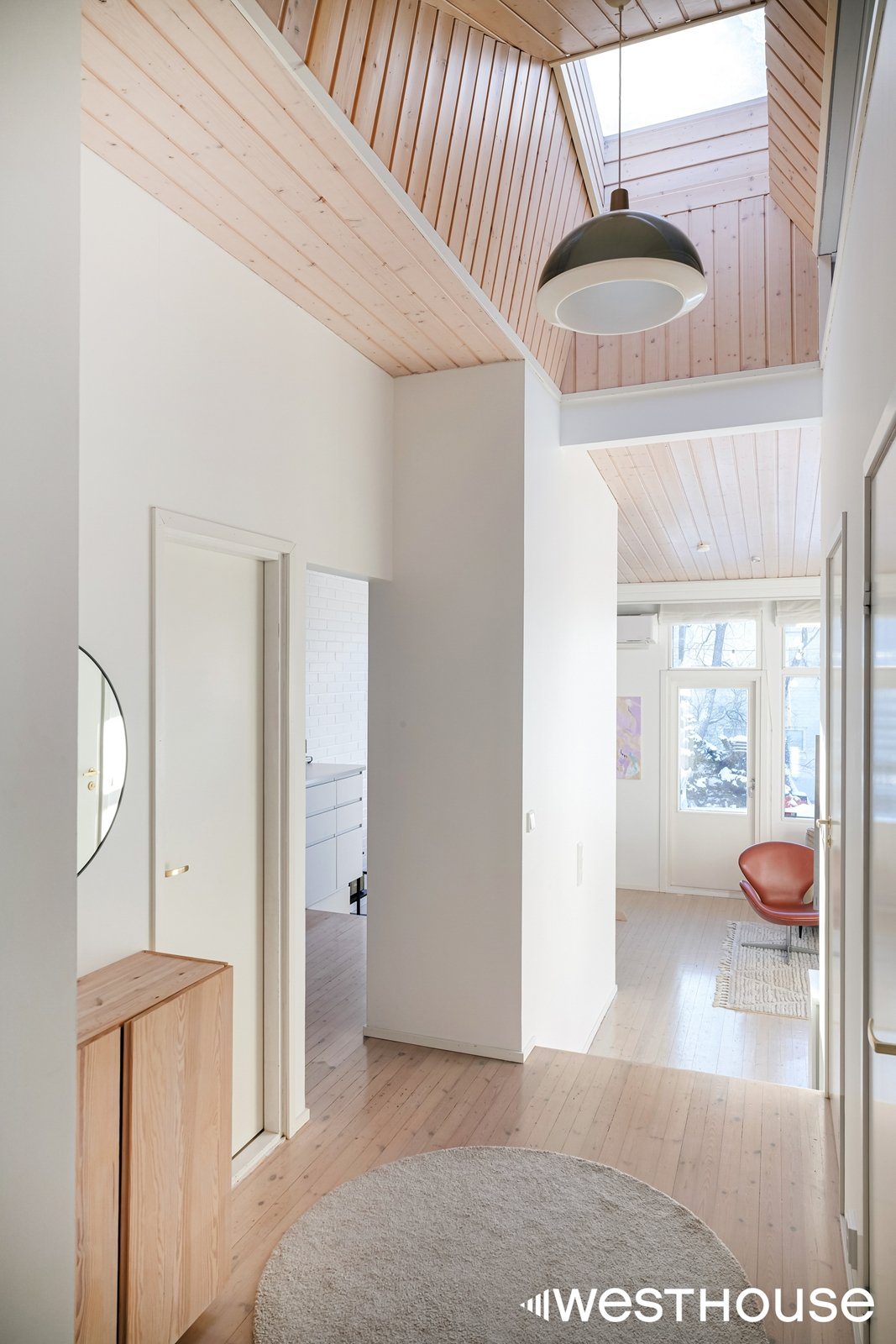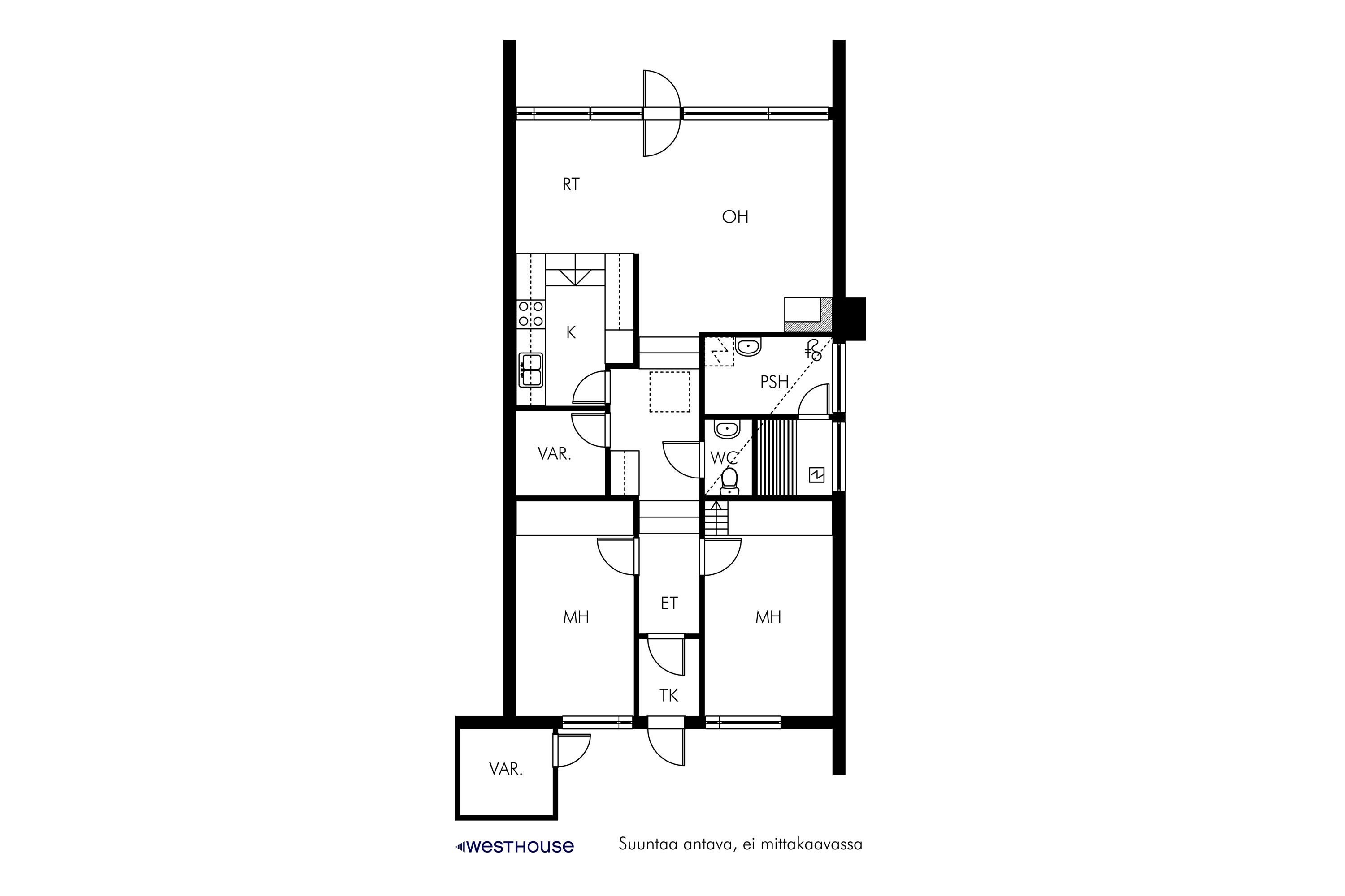 Kodin sydän on avara olohuone, jonka isoista ikkunoista aukeaa avarat näkymät. Asunnossa on kaksi makuuhuonetta, joten se sopii erinomaisesti niin pienelle perheelle kuin pariskunnallekin. Toisesta makuuhuoneesta on käynti tilavalle parvelle, joka tarjoaa mukavasti lisätilaa. Keittiö on hyvin varusteltu ja mm. laskutilaa löytyy riittävästi.