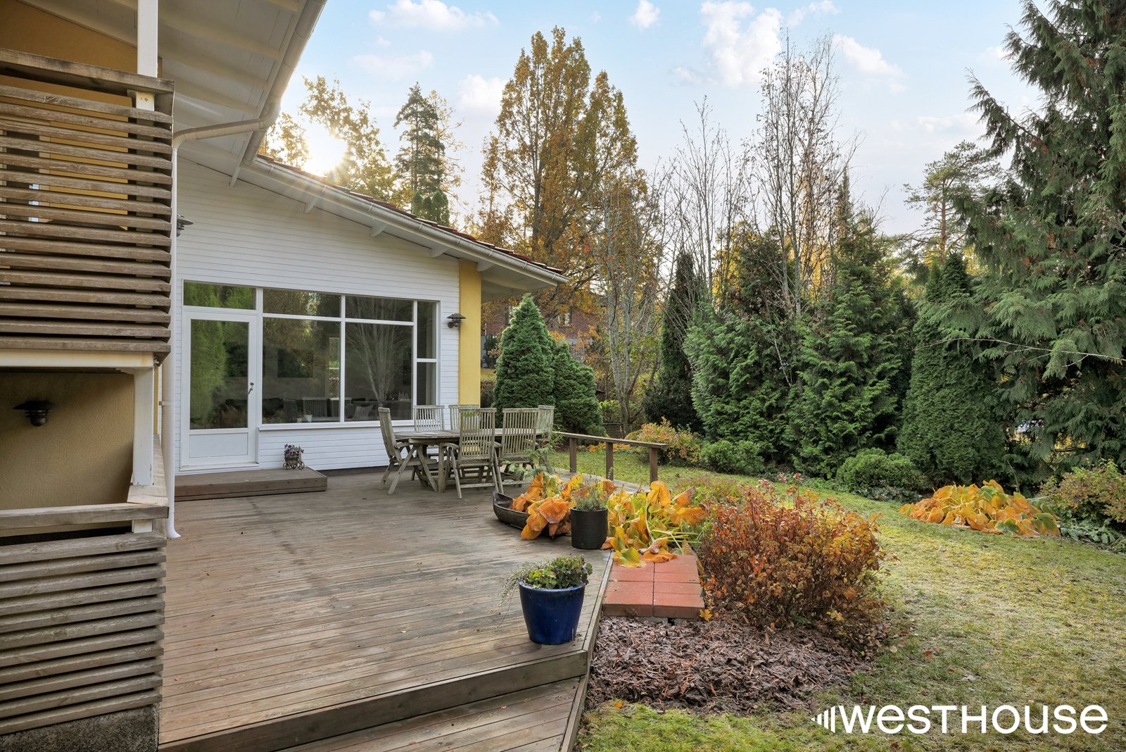 Suojaisa piha-alue länteen.