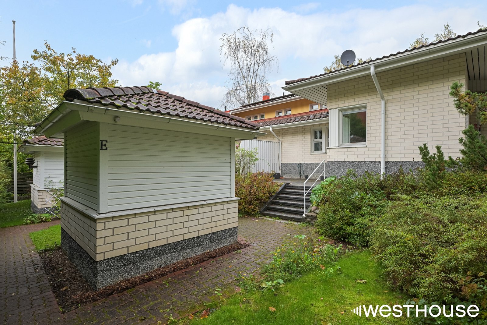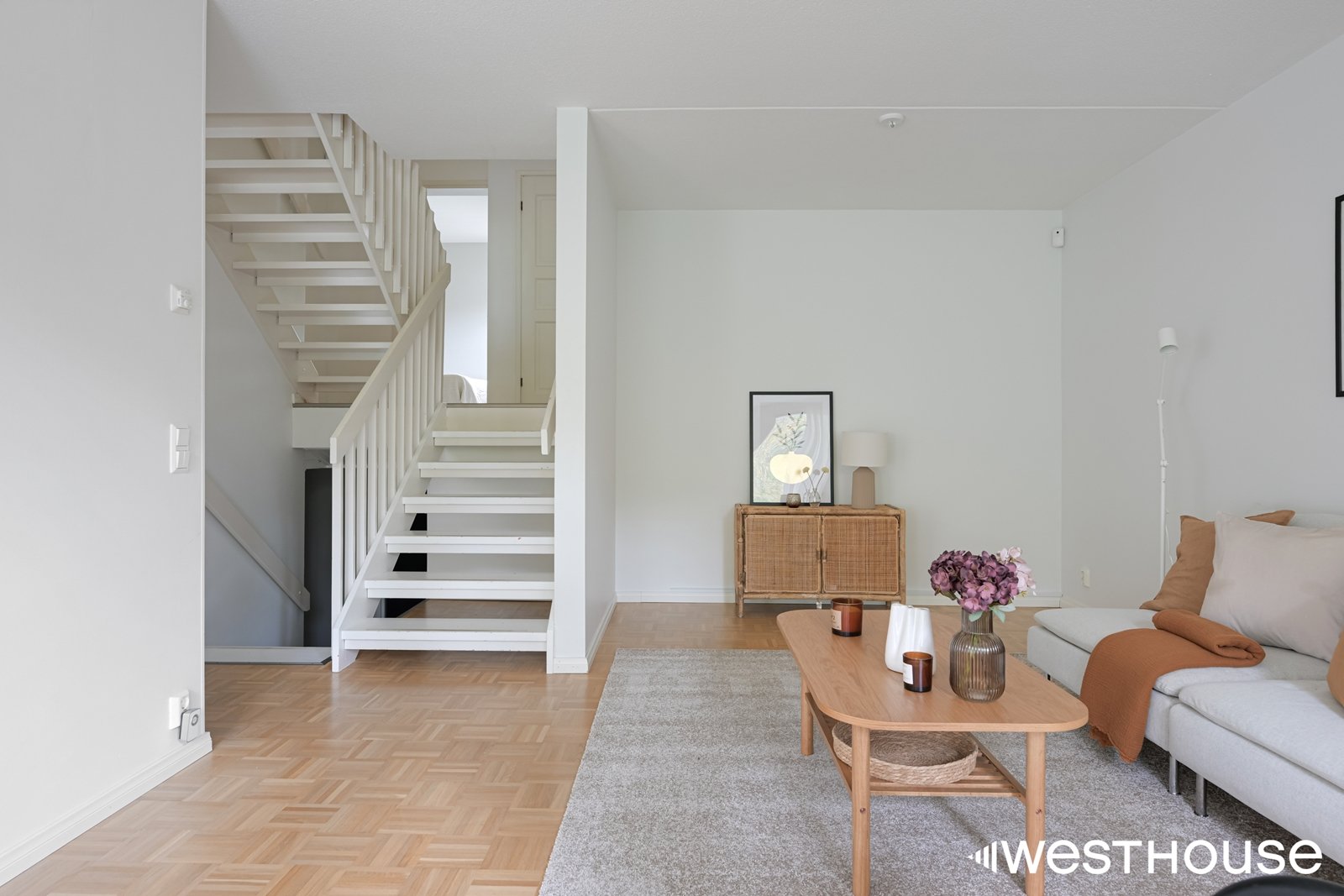 Vuonna 1991 valmistuneessa rivitalokodissa on erinomaiset mittasuhteet ja asuintilat on porrastettu mukavasti kolmeen eri tasoon. Lisäksi kodissa on kellarikerros, jossa tilavat uudistetut sauna- ja kodinhoitotilat.