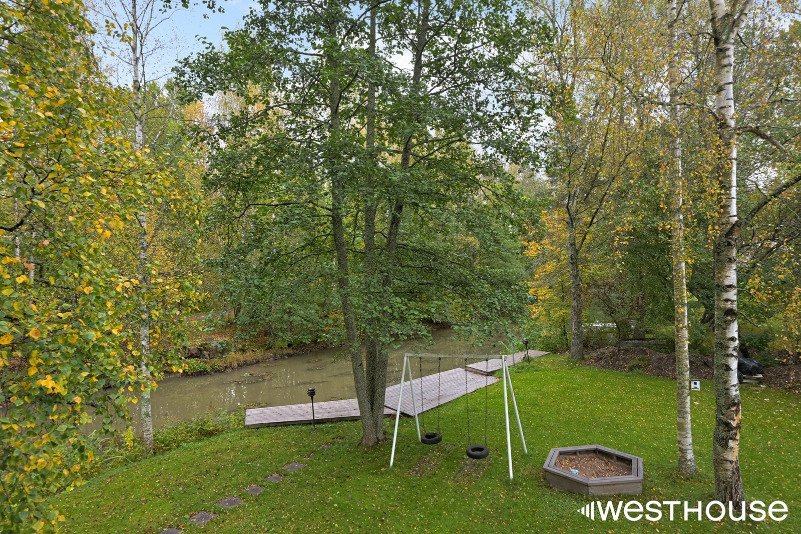 Huoneistolla on vehreä takapiha, jossa reilun kokoinen terassi sekä nurmea. Yhtiön piha jatkuu kauniisti Gräsanojalle jonka reunassa laituri. Huoneiston etupuolella on myös etupiha.