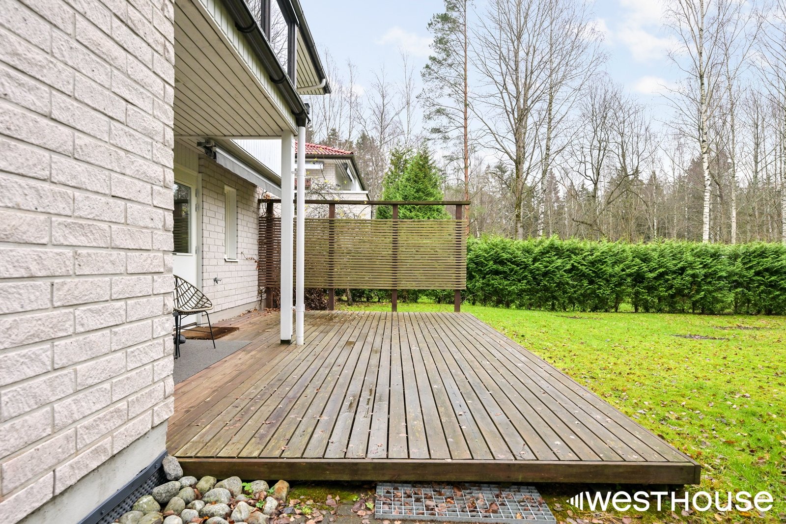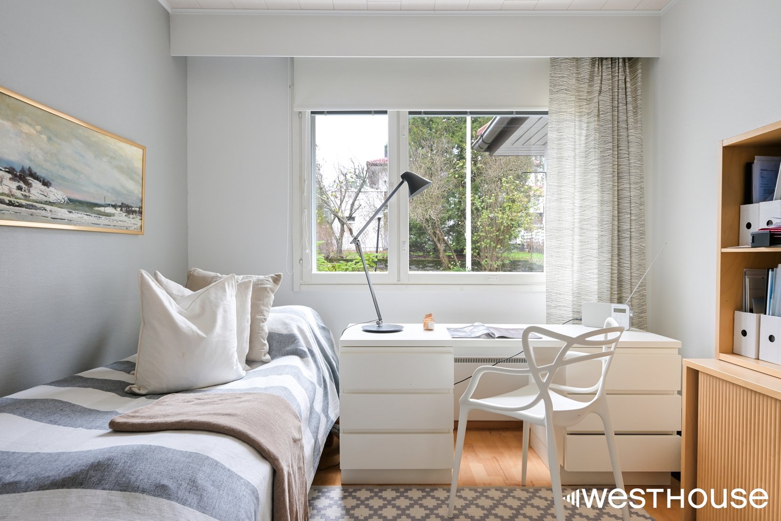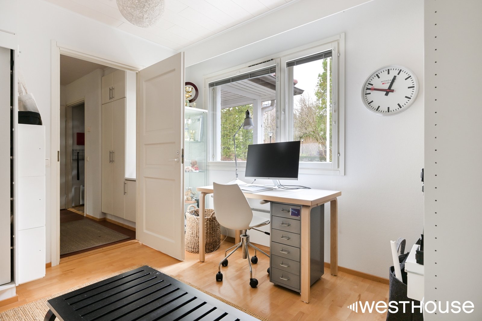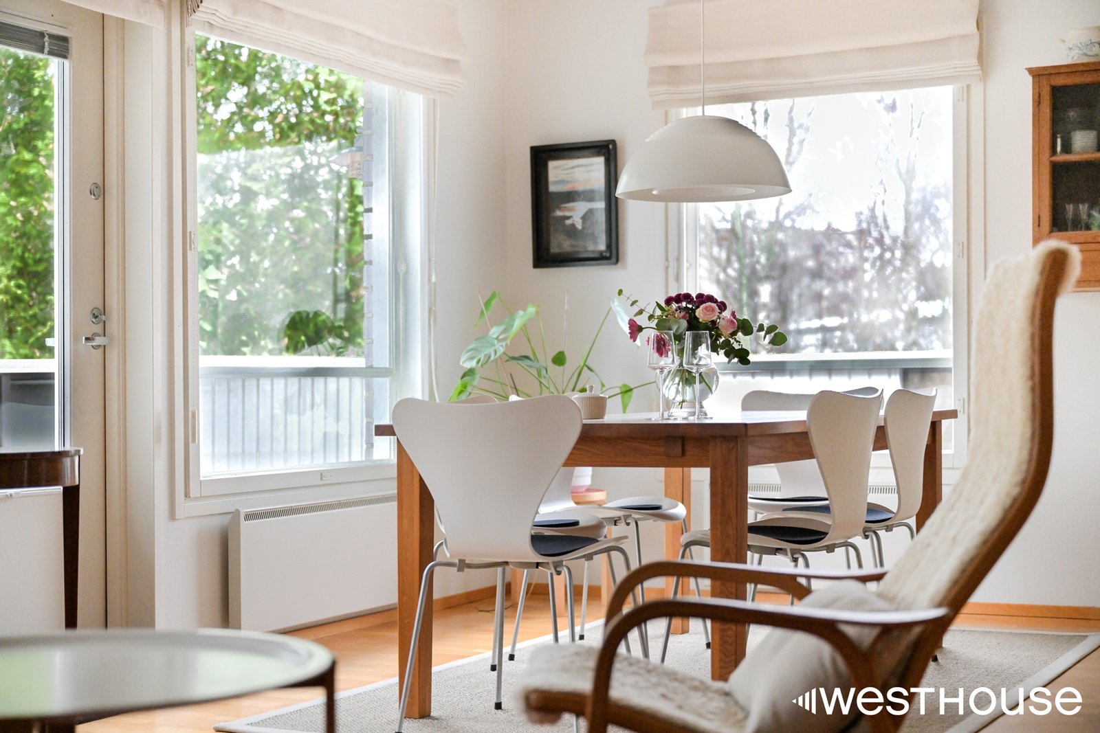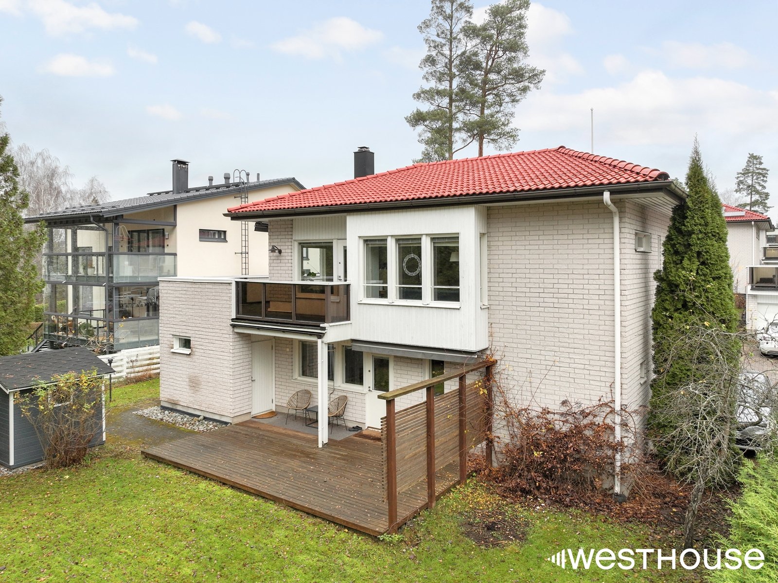 Tämä tilava ja valoisa erillistalo Espoon Iirislahdessa tarjoaa erinomaiset puitteet perhe-elämälle. Talossa on kolme makuuhuonetta, ja alakerran takkahuone toimii tarvittaessa lisämakuuhuoneena. Olohuone ja ruokailutila avautuvat etelään, tarjoten vehreät näkymät omalle pihalle. Piha rajautuu puisto/metsämaisemaan, ja on hyvin suojaisa.