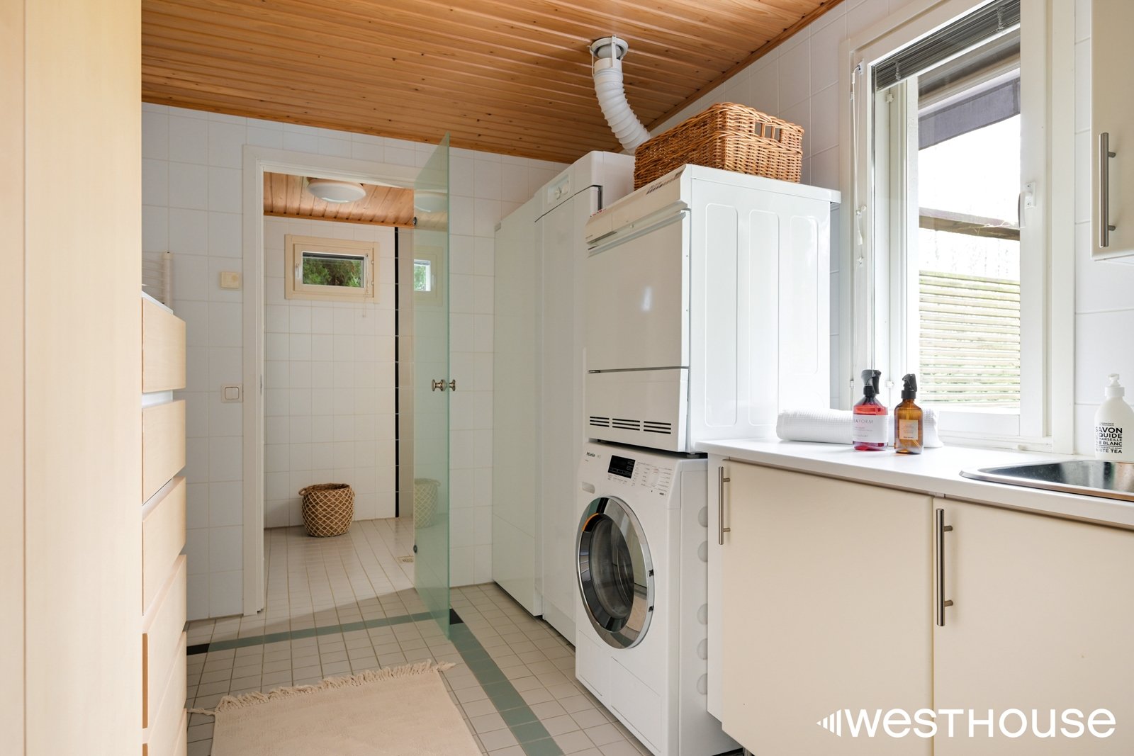 Keittiö on tilava, ja sieltä löytyy runsaasti kaappitilaa. Keittiön ohessa olevaan ruokailutilaan mahtuu isompikin ruokapöytä perheen ja ystävien kanssa vietettyjä ruokahetkiä varten. Saunaa on uusittu vuonna 2022, ja sen yhteydessä on tilava pesuhuone kahdella suihkulla. Alakerran kodinhoitohuoneessa on pyykkitorni ja kuivauskaappi, mikä helpottaa arjen askareita.