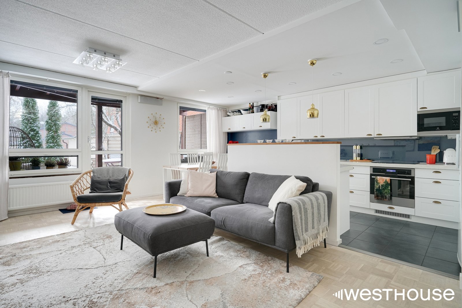 Asunnolla on kaksi autopaikkaa, joissa latausasemat. Pihapiiri on suojaisa ja lapsille turvallinen. Sijainti on mainio, sillä koulut, päiväkodit sekä kaupat löytyvät läheltä.