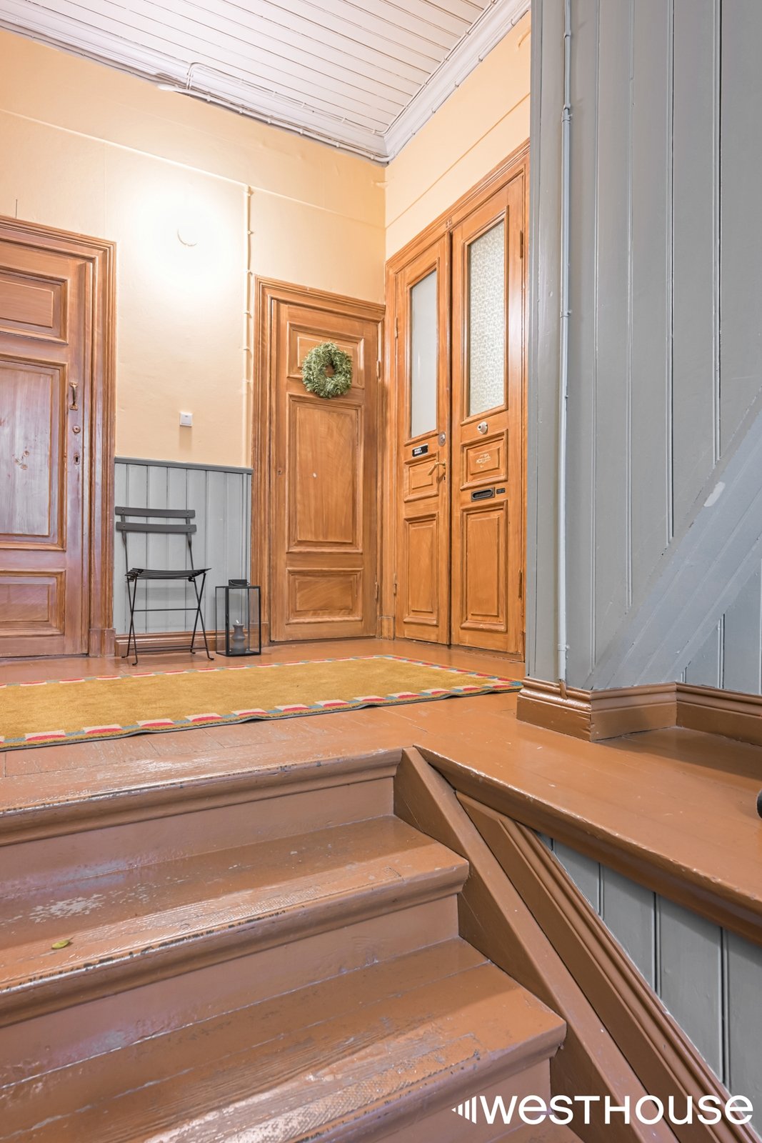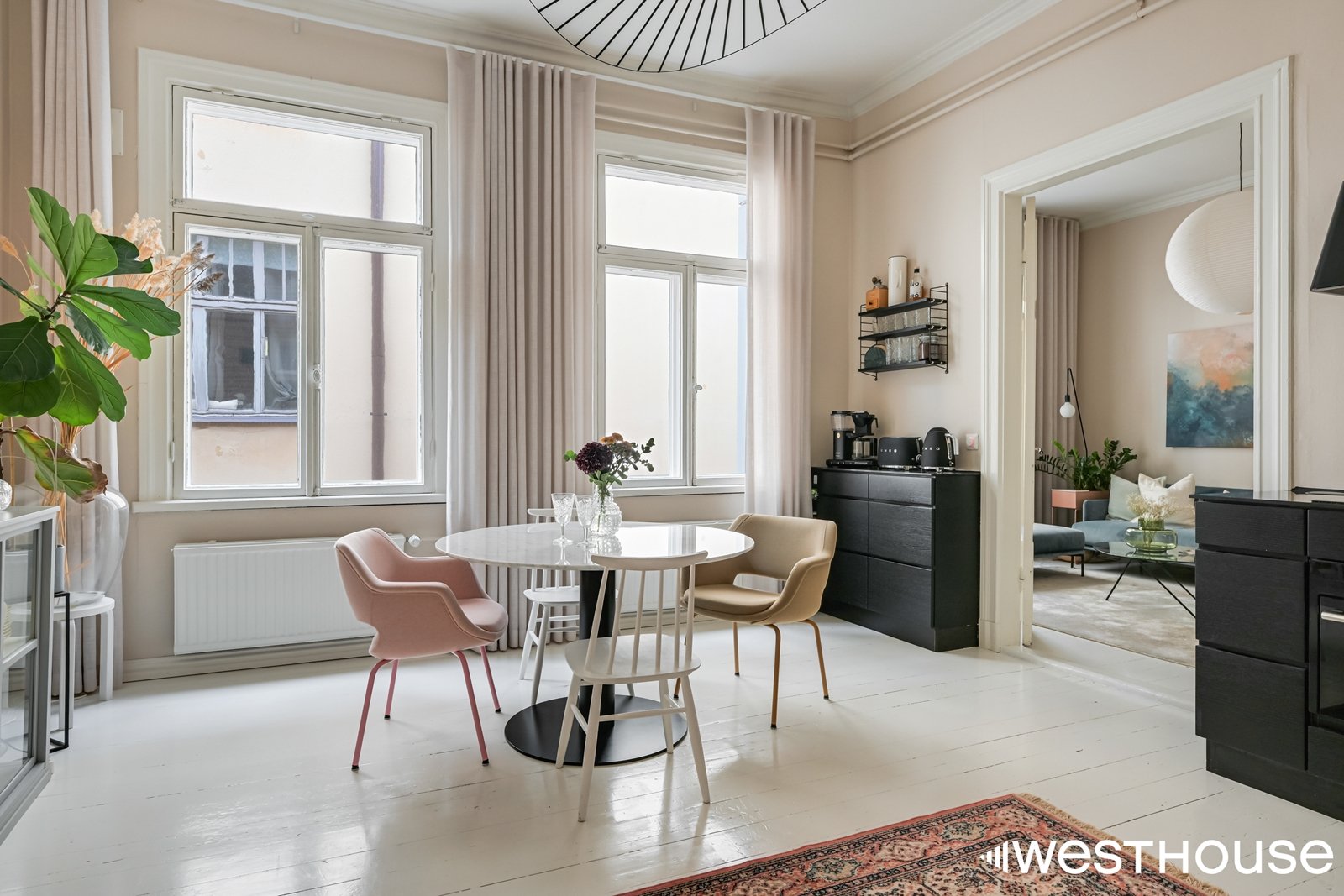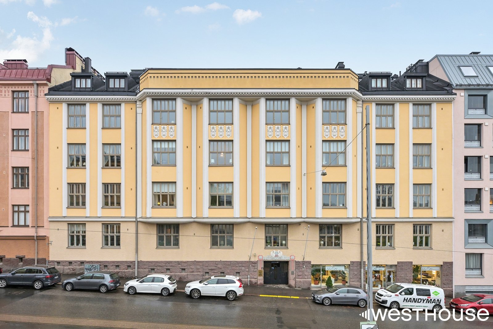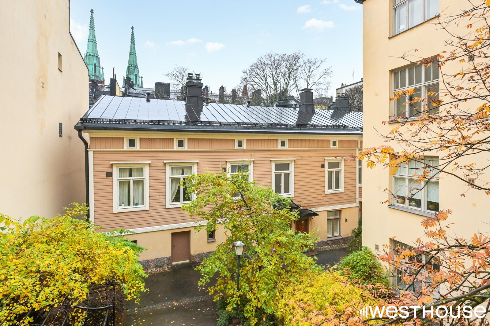Tervetuloa Kultakalan kortteliin Ullanlinnaan – Helsingin sydämeen, mutta silti rauhaan kaupungin kiireiltä. Asunto-osakeyhtiö Irjan vehreällä ja suojaisalla sisäpihalla odottaa sinua tämä hurmaava 65,5 neliön kaupunkikoti. Tämä tilava koti sijaitsee rivitalossa, joka on yksi harvoista Helsingin kantakaupungissa säilyneistä upeista puutaloista (1896). Rakennusmestari Anders Jakobssonin 1890-luvulla suunnittelema puutalo on todellinen harvinaisuus, joka kätkeytyy Kasarmikadun varrella kohoavan, myöhäisjugendia edustavan liike- ja asuinkerrostalon (1913) sisäpihalle.