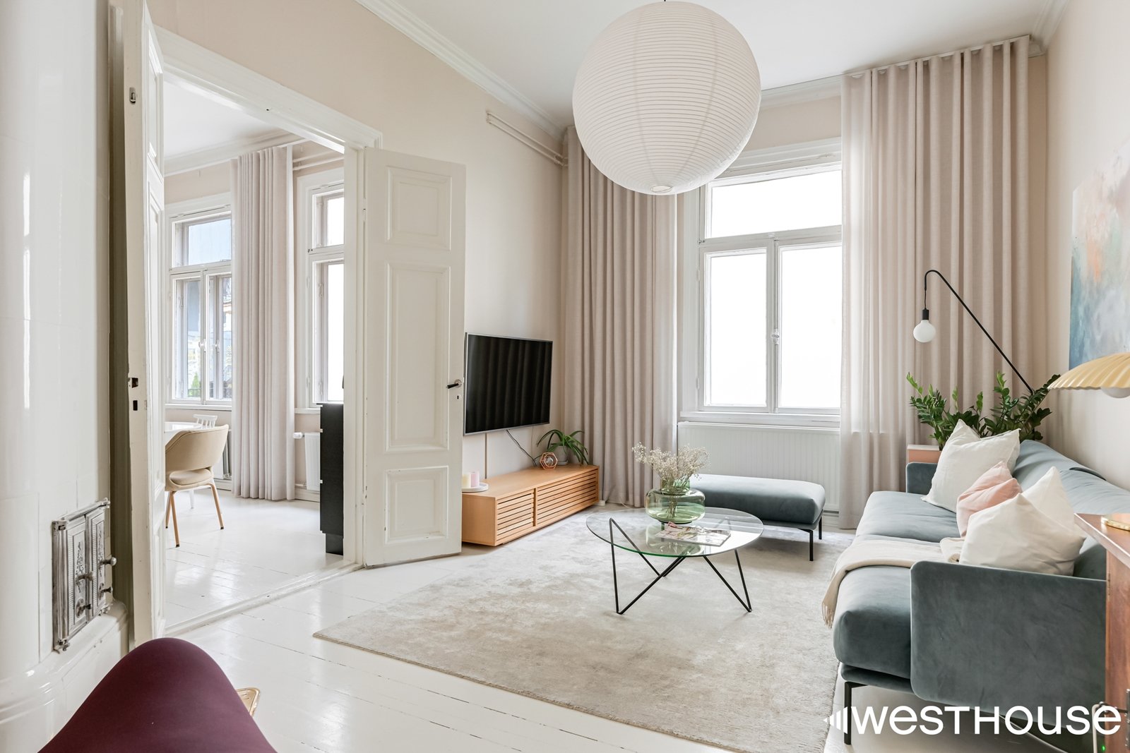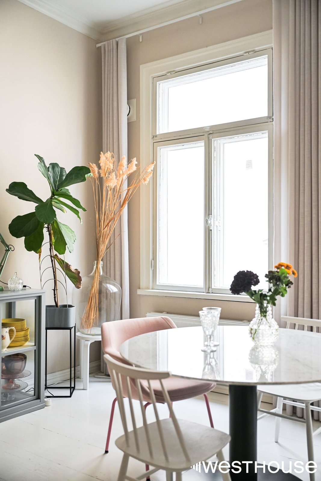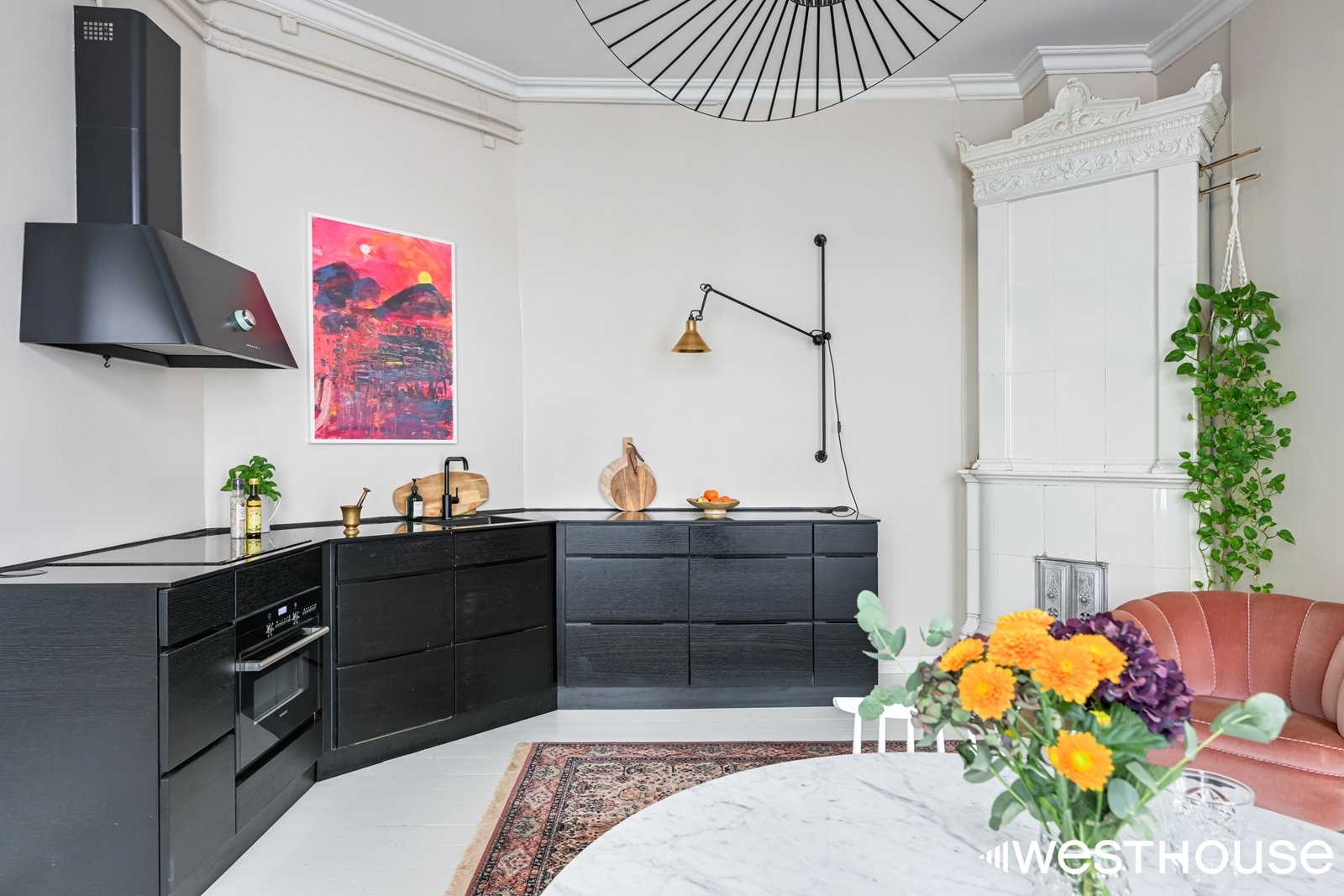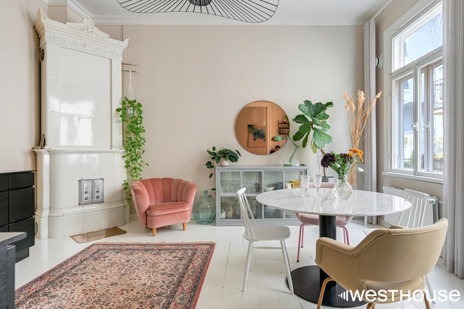 Asunto on ihastuttavan tunnelmallinen ja hyvässä kunnossa. Kaksi kakluunia ja pönttöuuni – keittiössä, olohuoneessa ja eteisessä – korostavat asunnon kauneutta. Ihanan tilavan avokeittiön kruunaavat isot näyttävät ikkunat. Makuuhuone sijoittuu sisäpihan rauhaan ja ikkunasta voi ihastella väriloistossaan kylpevää vehreää pihaa.