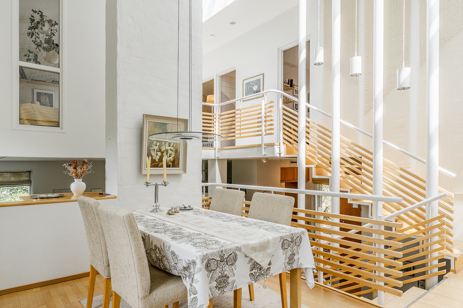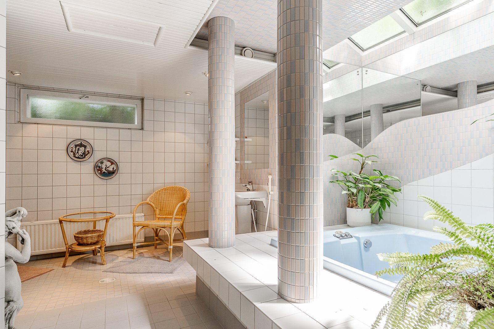 Tässä kodissa jokainen yksityiskohta on tarkkaan harkittu – laadukkaat materiaalit ja ajaton tyyli tekevät vaikutuksen vuodesta toiseen. Arjen luksusta tarjoaa oma spa-osasto, jossa voit rentoutua kiireisen päivän päätteeksi. Vehreä, puutarhamainen piha ympäröi taloa kuin oma rauhallinen keidas, jossa voit nauttia luonnon rauhasta ja yksityisyydestä.
