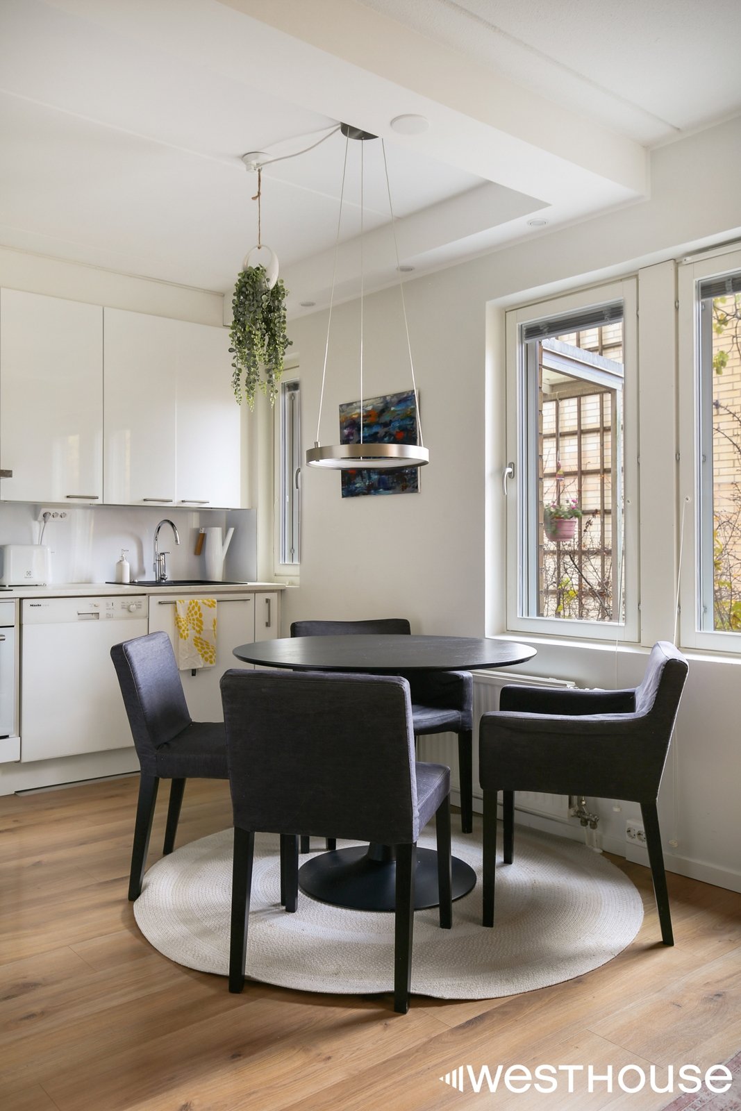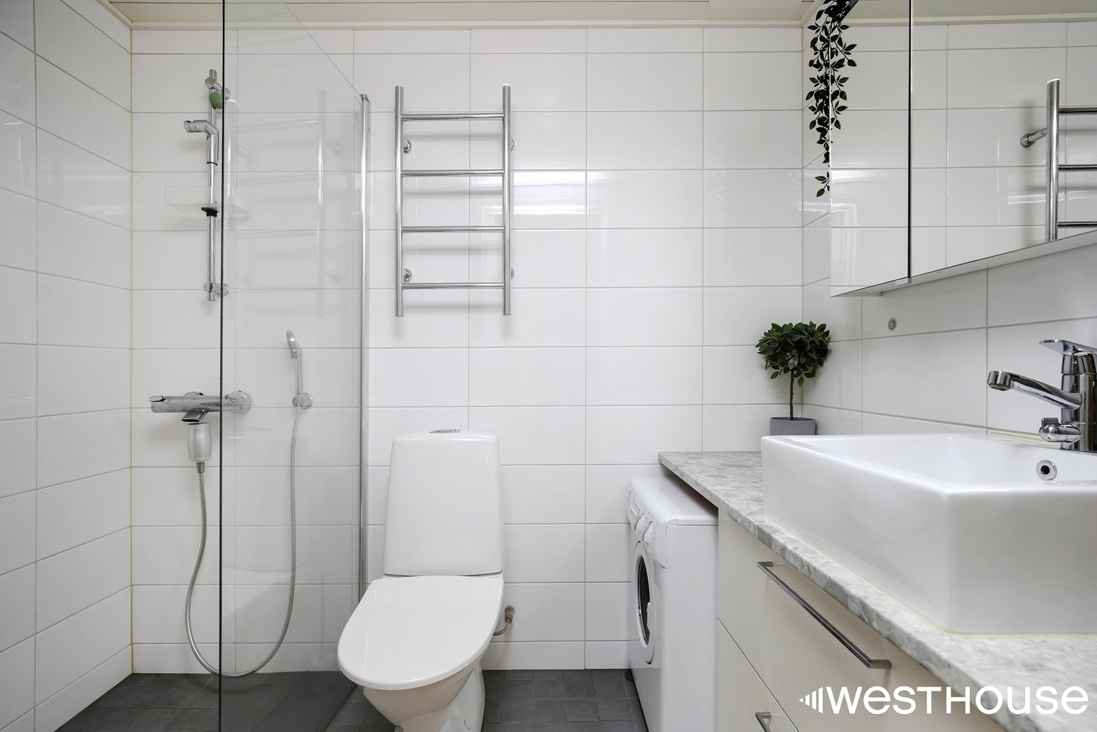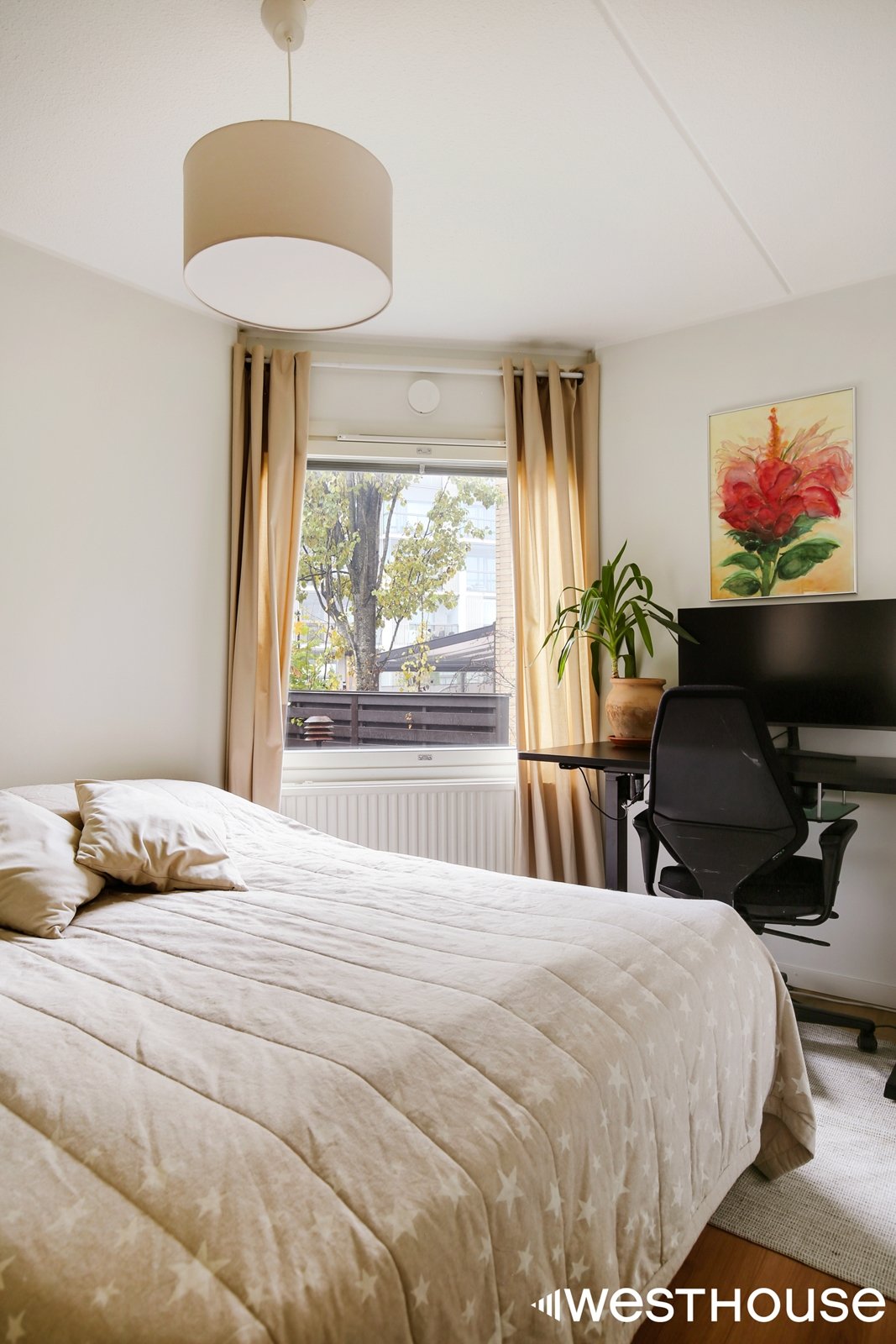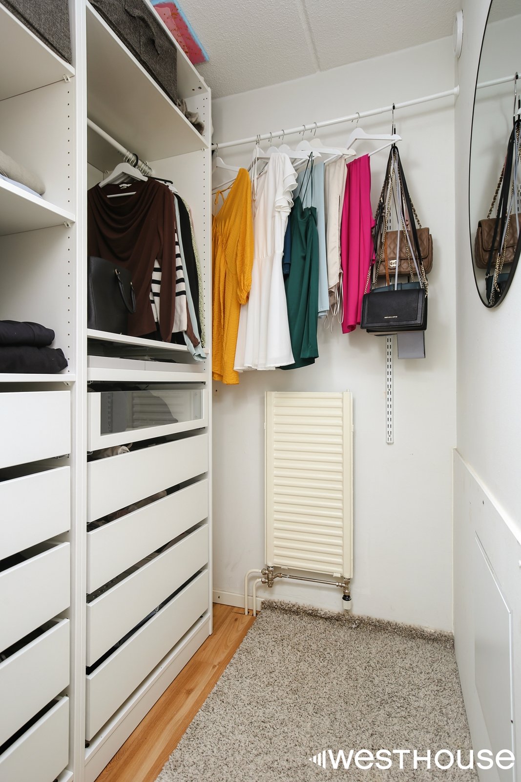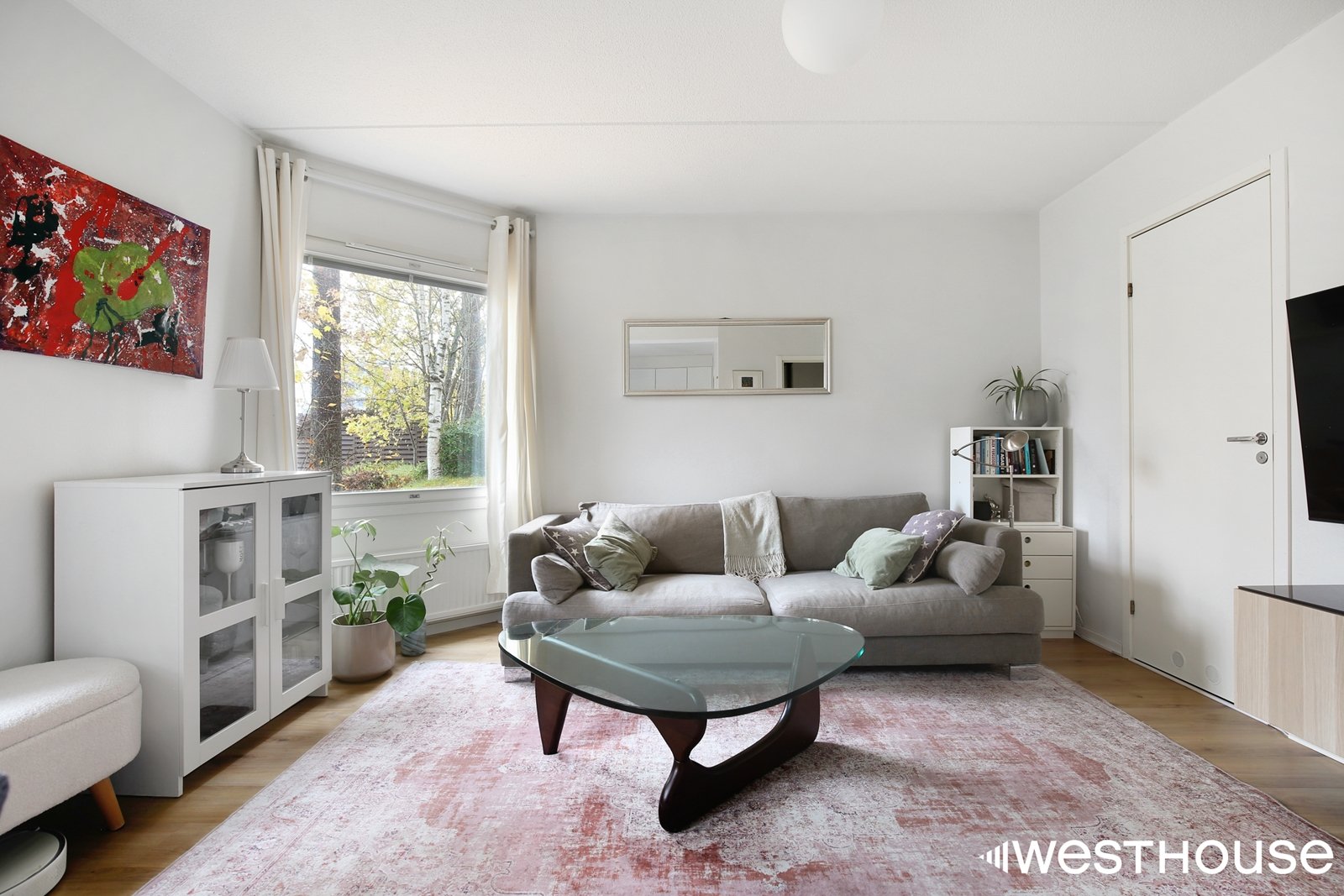 Asunnon pohjaratkaisu on järkevä. Olohuone ja keittiö on yhtenäistä tilaa ja paikka löytyy myös ruokapöydälle. Vaatehuoneen, kaapistojen ja erillisen varaston ansiosta säilytystilaa on runsaasti. Vuonna 2022 uusittu kylpyhuone on kuin uusi ja muutenkin asunnon pinnat ovat kunnossa.