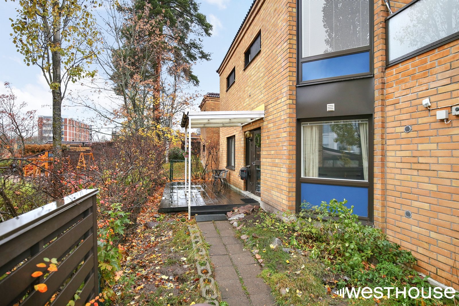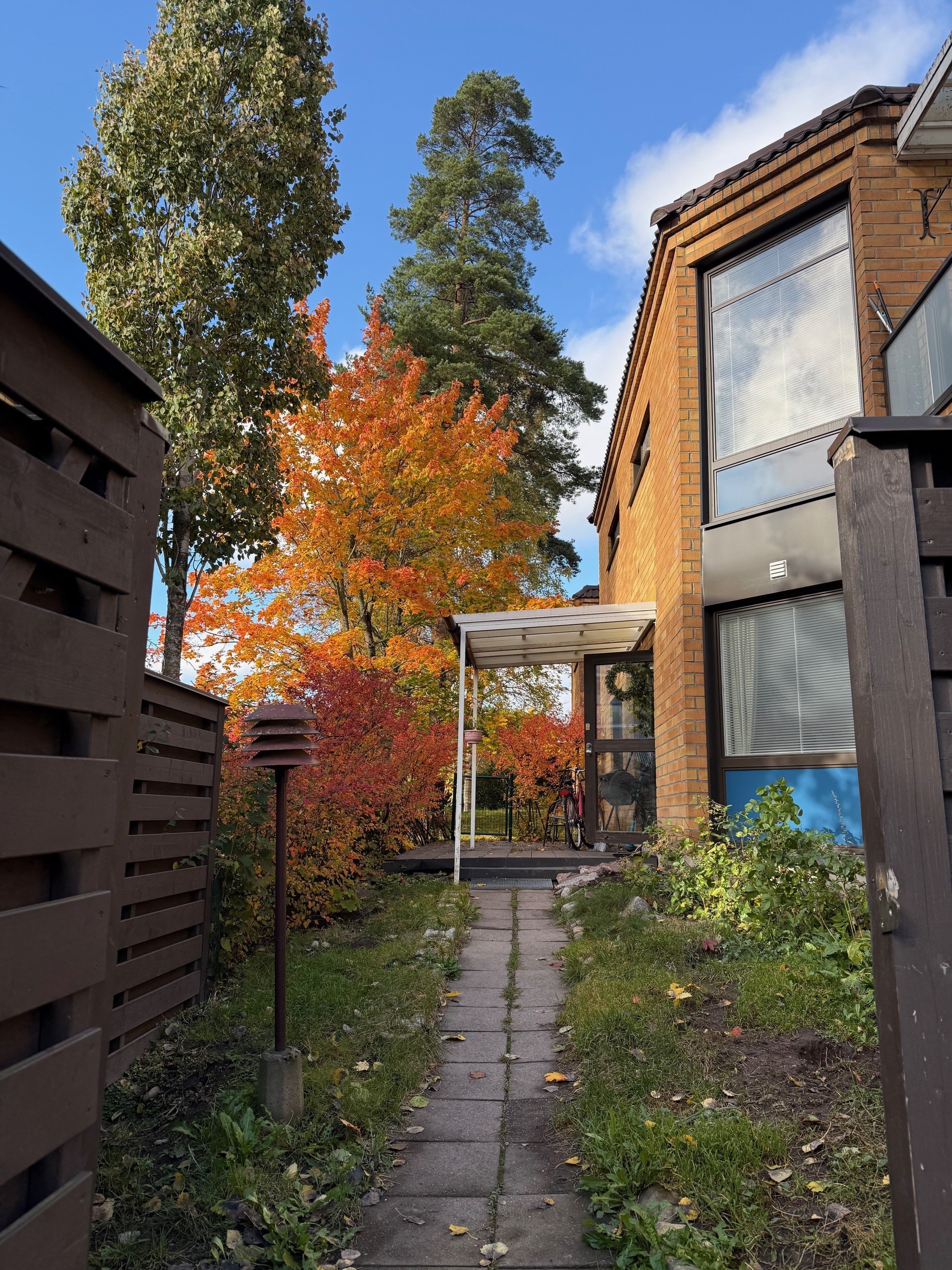 Oma piha on suojaisa ja kesällä aurinkoinen. Suurella terassilla on mukava viettää aikaa ja vaikkapa grillailla.