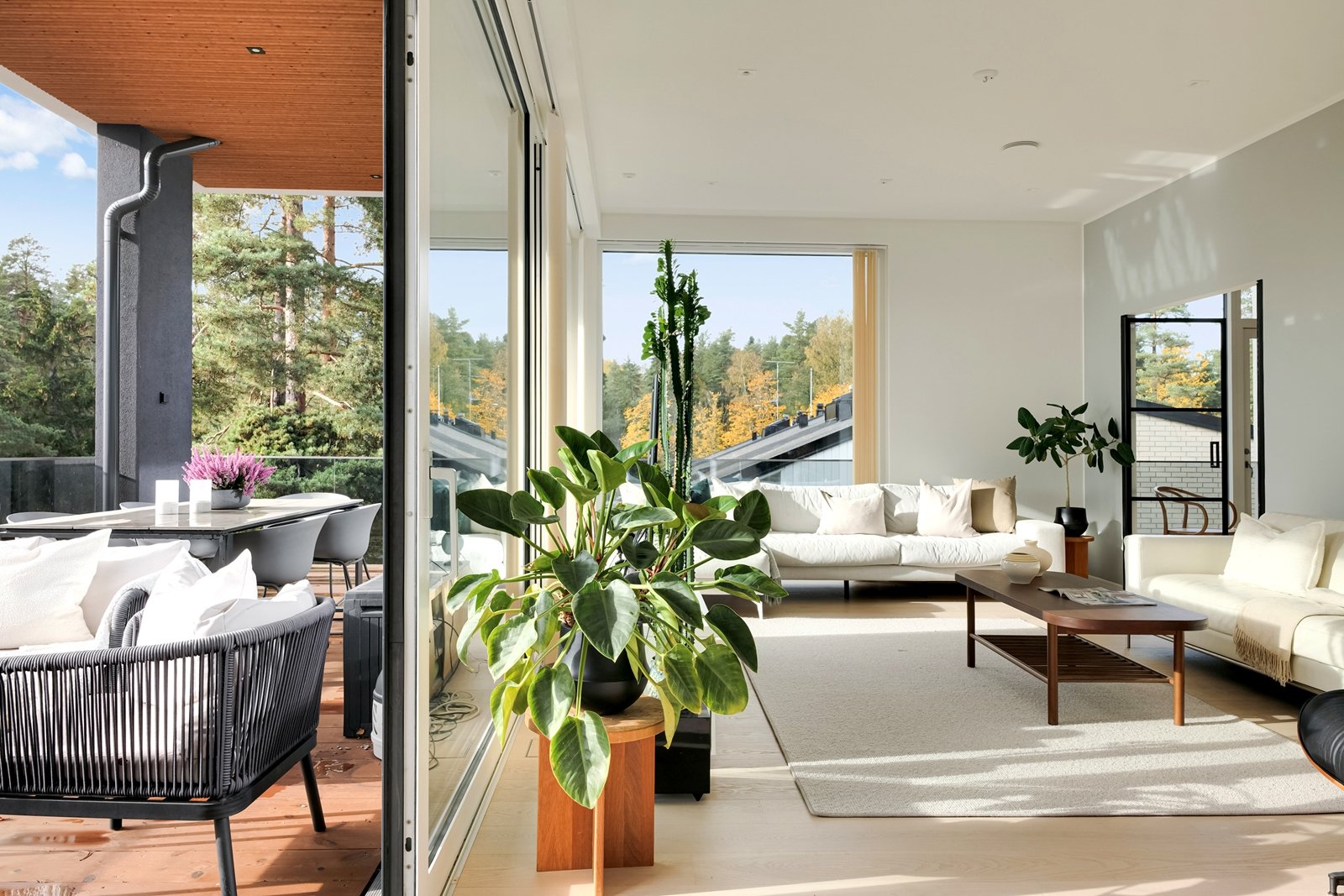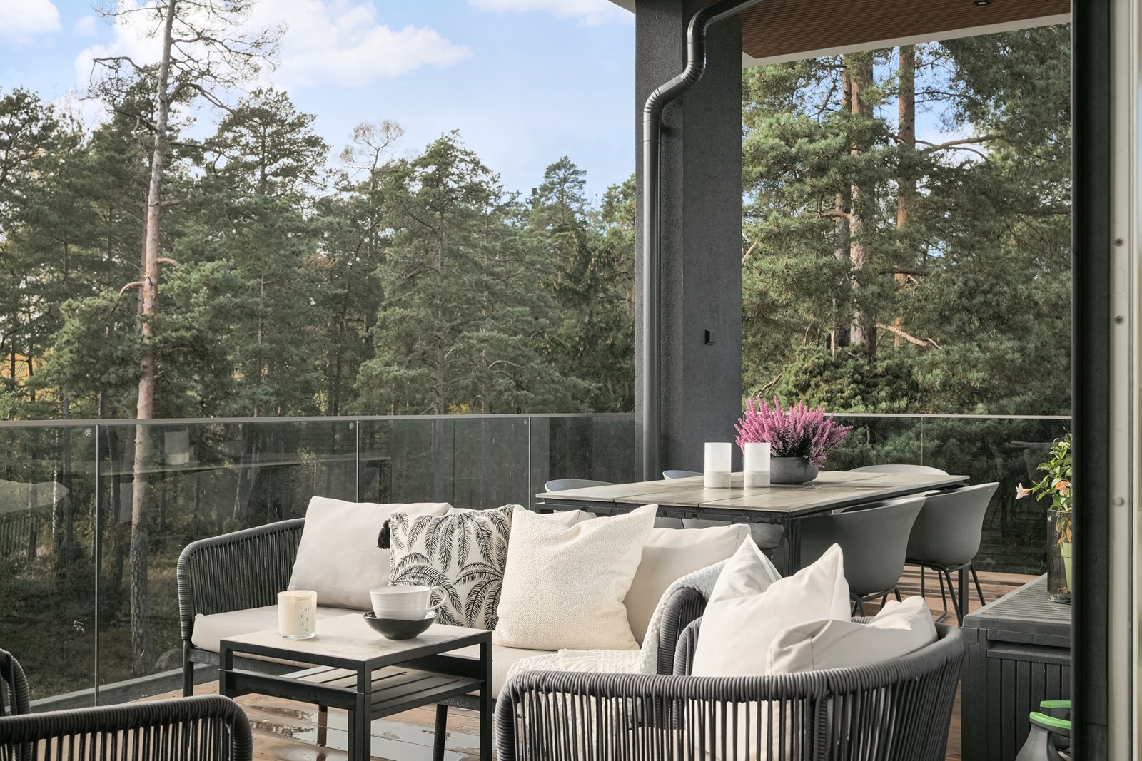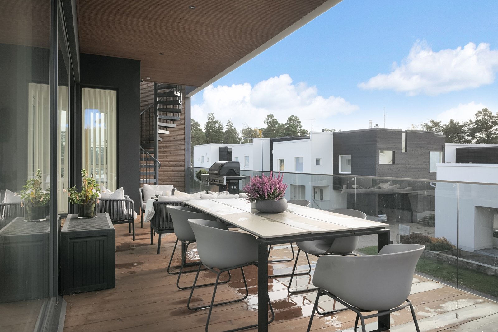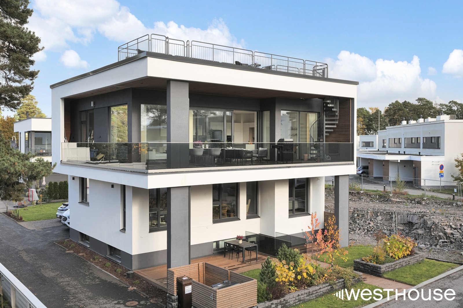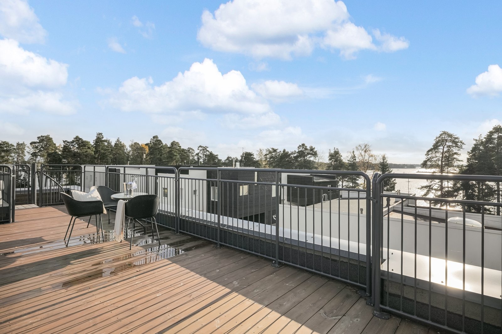 Kodin kruunaa henkeäsalpaava kattoterassi, jossa voit nauttia kesäpäivistä, merituulesta ja upeista näkymistä – tämä on paikka, jossa arki muuttuu lomaksi.