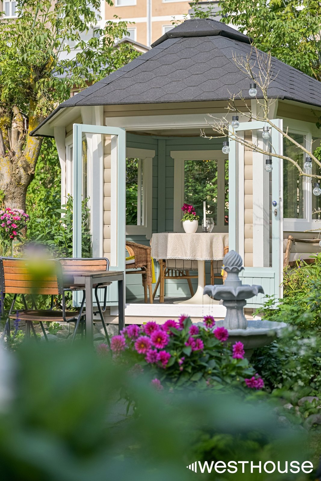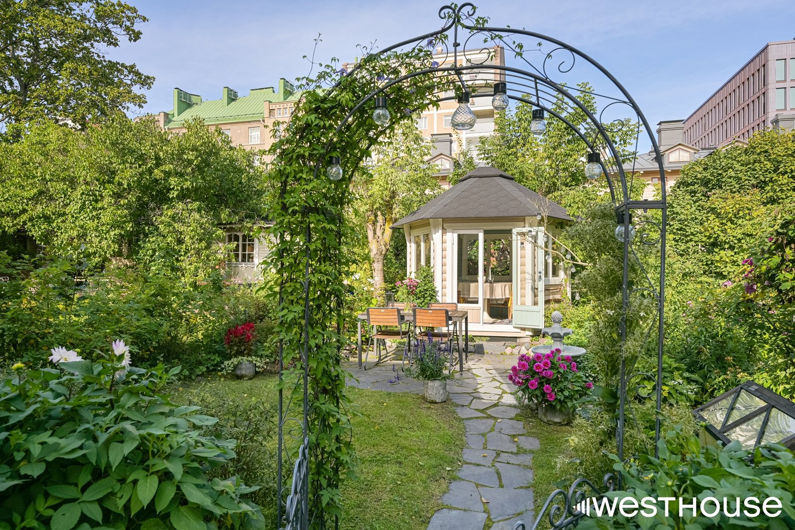 Asuntoon kuuluva oma puutarha-alue on ainutlaatuinen elementti Helsingin keskustassa. Astut ovesta ulos ja kauniin puutarhan ympäröimä kesäpaviljonki on muutaman askeleen päässä – Voisiko olla enää paremmin.