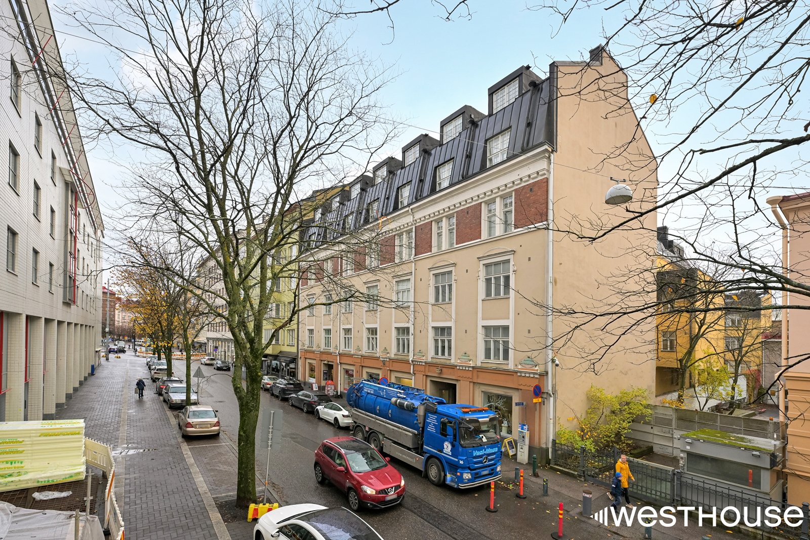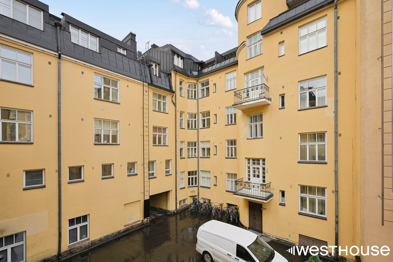 Tämä valoisa ja ilmava asunto sijaitsee Helsingin keskustassa, arvostetulla Kampin alueella. Sijainti on kuitenkin rauhallinen, eivätkä kaupungin äänet kuulu tähän 4 kerroksen asuntoon. Vuonna 1914 valmistunut talo huokuu Jugend -ajan tyyliä, mutta se on hyvin pidetty ja muun muassa pystyviemärien sukitusurakka on juuri valmistunut. Suuri korjauksia ei ole tiedossa lähitulevaisuudessa.