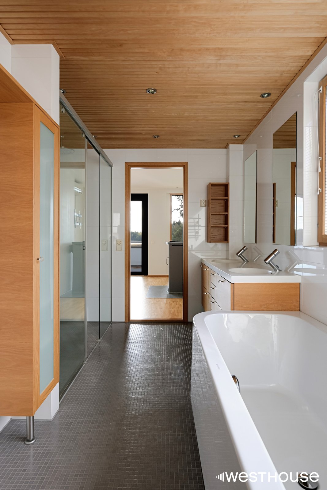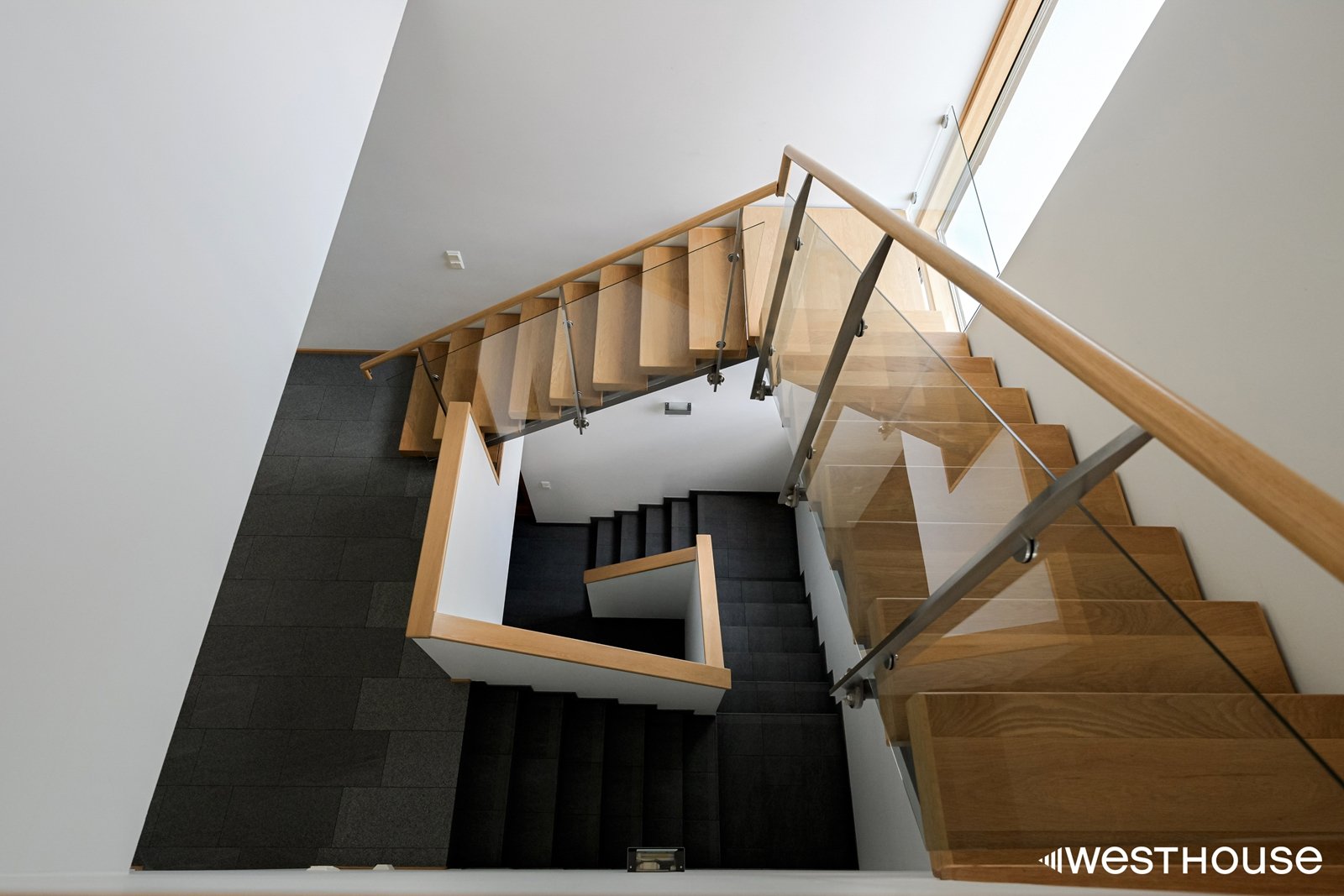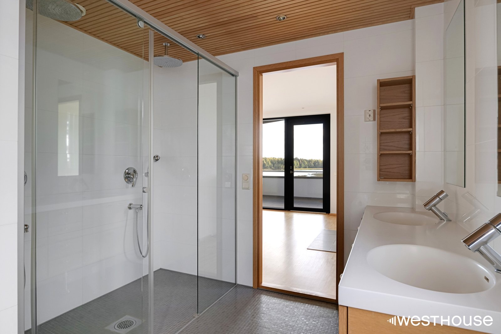 Pohjaratkaisussa on huomioitu päämakuuhuoneen yksityisyys. Päämakuuhuone sijaitsee yläkerrassa talon merenpuoleisella puolella, omassa rauhassaan. Erillinen parveke, tilava pesuhuone ja vaatehuone sekä työhuone sijoittuvat makuuhuoneen yhteyteen. Talon toisella puolella on erillinen yksiö, jossa on oma pieni keittiö –loistava tila moneen erilaiseen käyttöön.