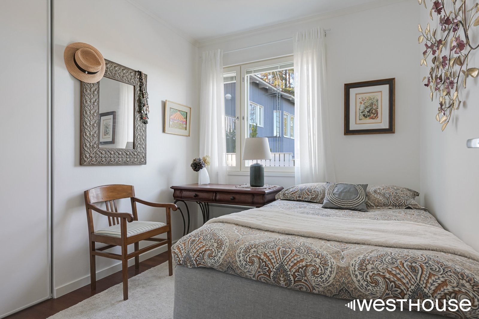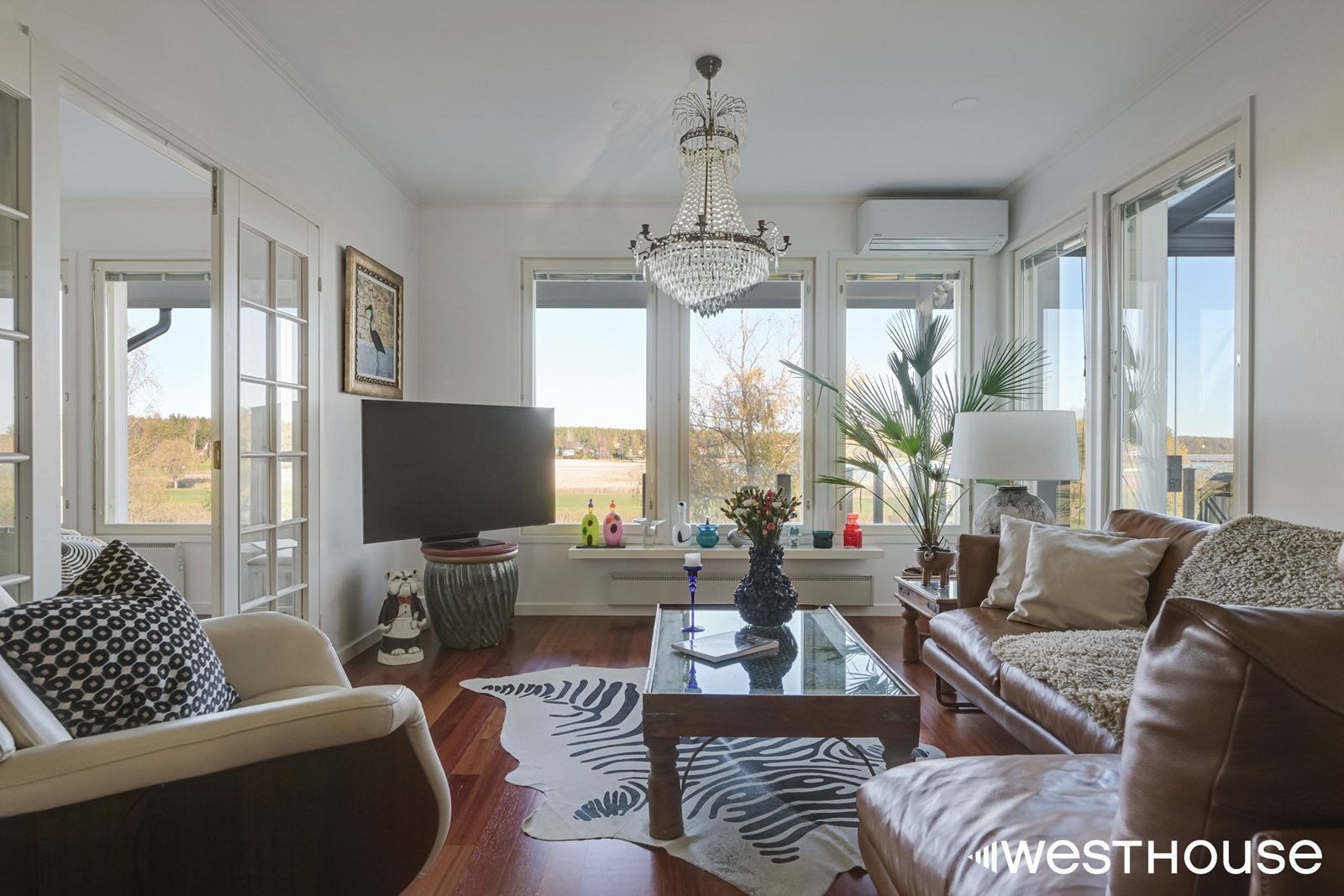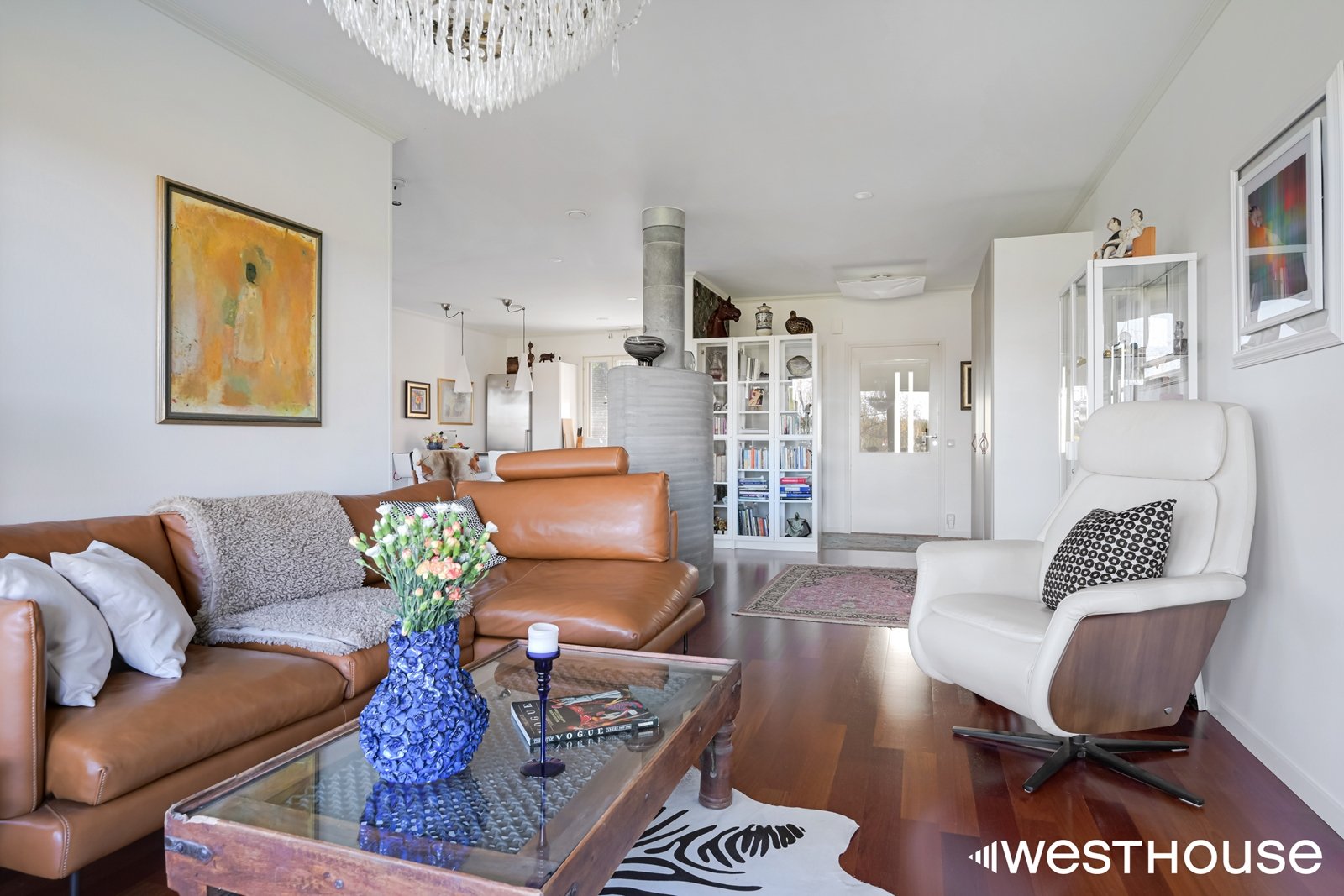 Talon sydämen luo olohuoneen kaunis takka, joka luo lämpöä ja tunnelmaa viileinä syys- ja talvi-iltoina sekä vaalea avokeittiö, josta avautuvat näkymät aina merelle saakka. Keittiön saareke ja laadukkaat kodinkoneet tekevät ruoanlaitosta nautinnon.