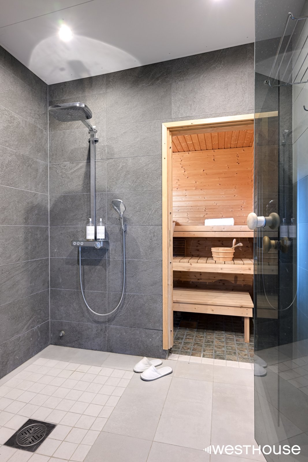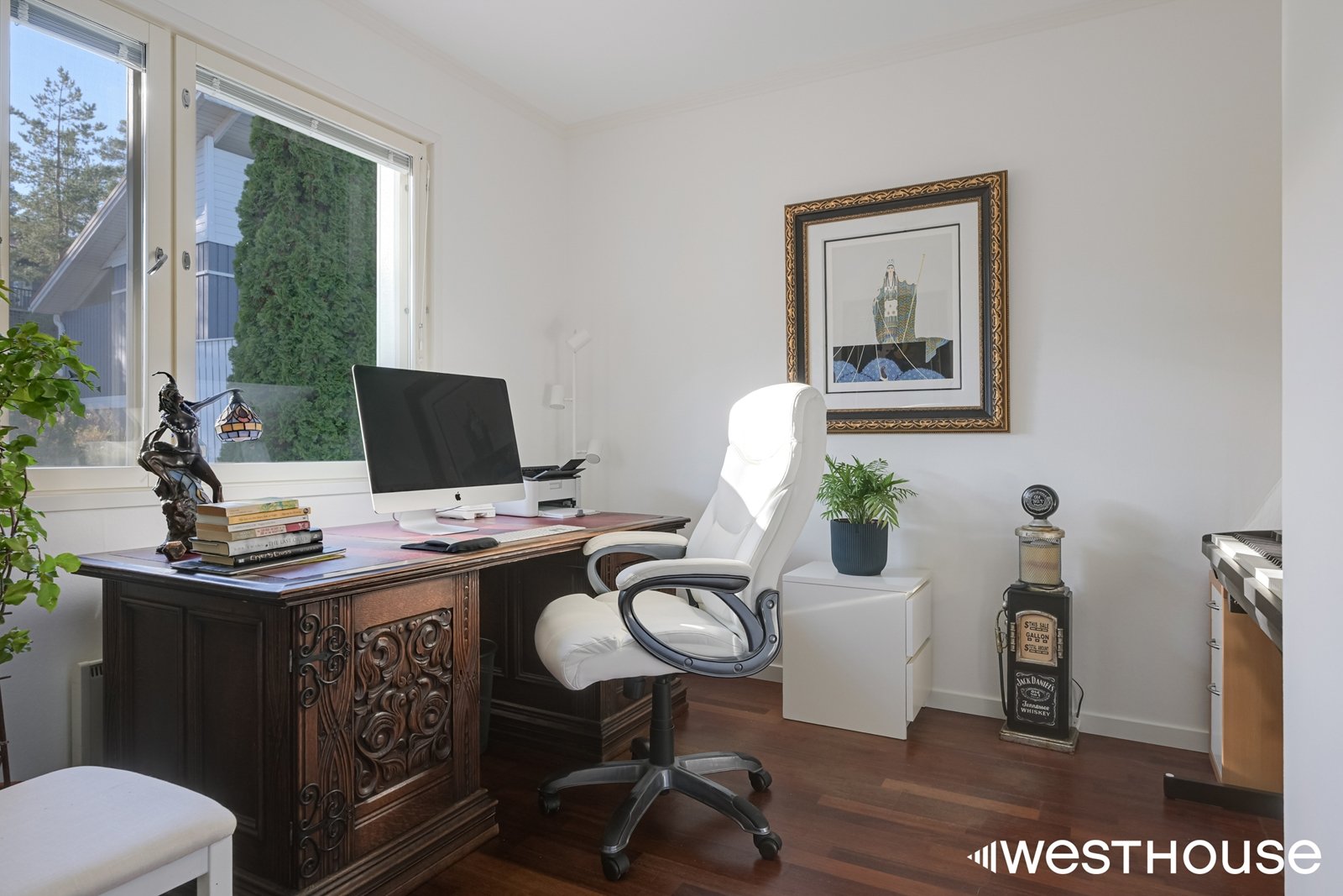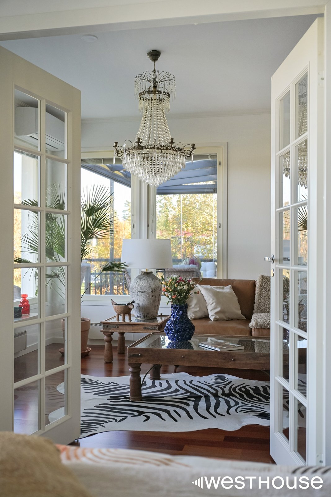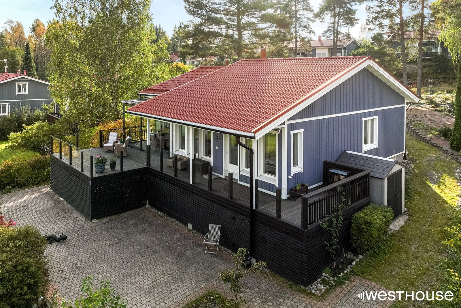Talon sydämen luo olohuoneen kaunis takka, joka luo lämpöä ja tunnelmaa viileinä syys- ja talvi-iltoina sekä vaalea avokeittiö, josta avautuvat näkymät aina merelle saakka. Keittiön saareke ja laadukkaat kodinkoneet tekevät ruoanlaitosta nautinnon.