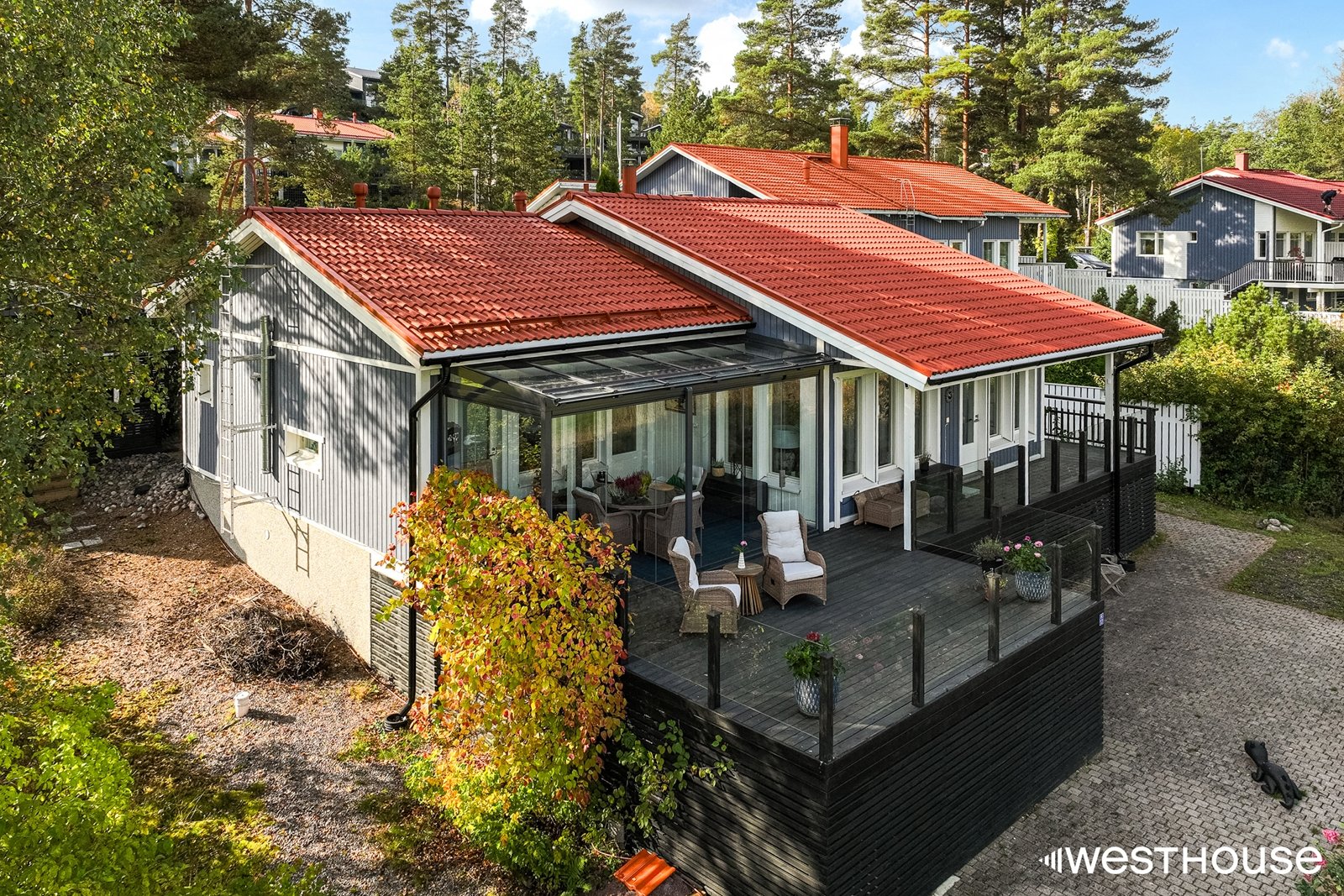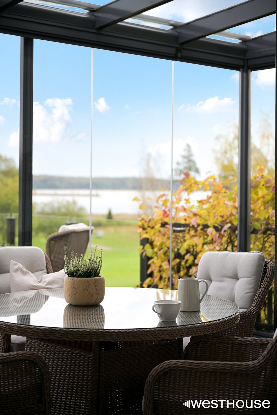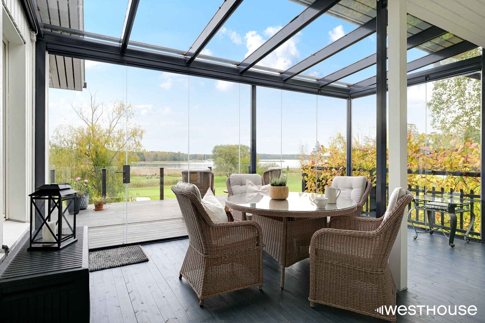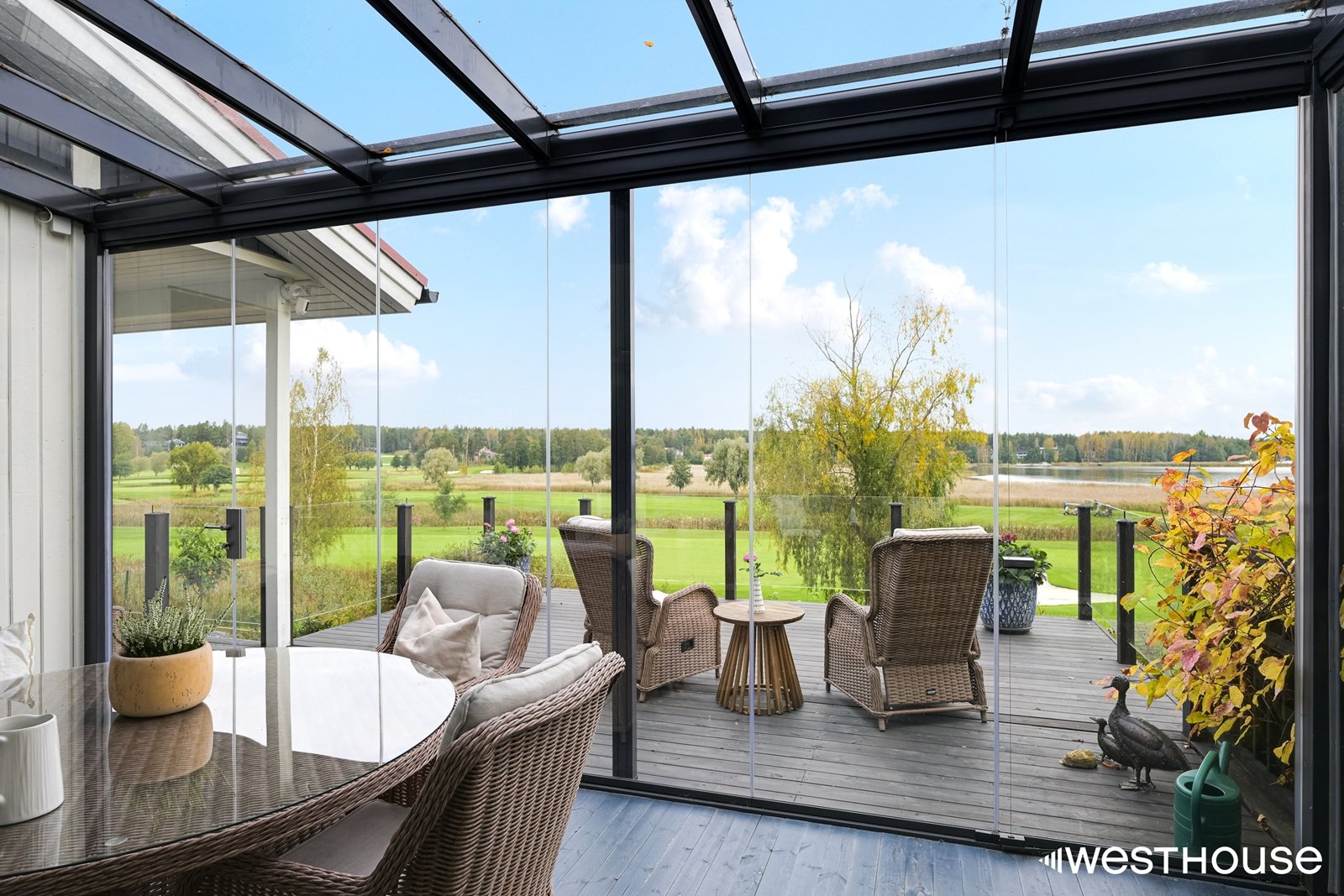 Talon ulkopuolella on tilava koko talon levyinen terassi sekä lasitettu terassi, joka on valmistunut vuonna 2024. Täydellinen paikka nauttia syysilloista tai rentoutua ystävien seurassa.