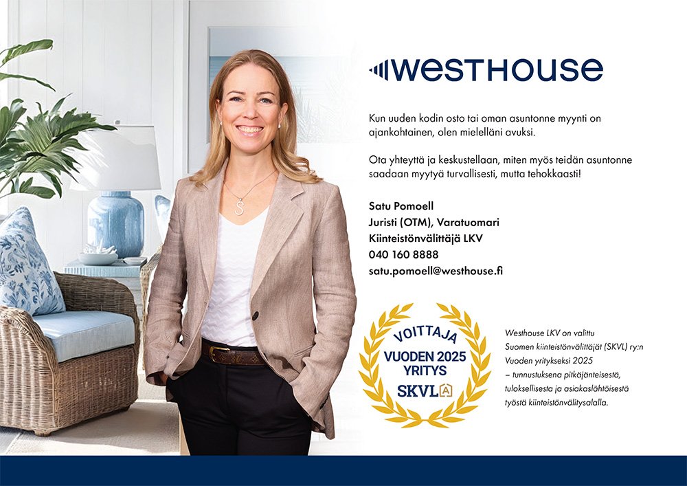 Tiedustelut ja esittelyt: Satu Pomoell, 040 160 8888 tai satu.pomoell@westhouse.fi